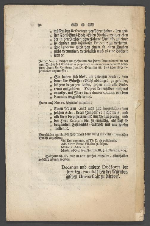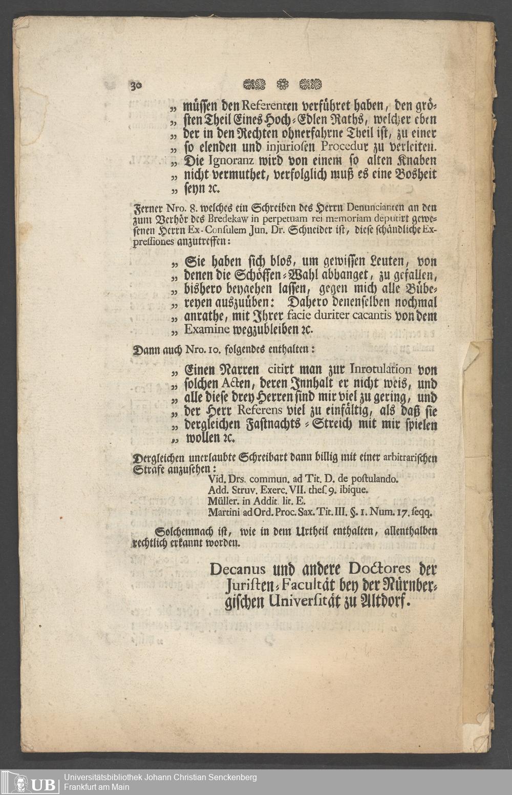 Na 31 Nachlass Johann Christian Senckenberg, 73 - Prozeßakten Agricola (Druck) 1749. Nürnberger Urteil gegen Erasmus Senckenberg (Druck) 1761. Vergleichsverhandlung mit dem Senat (p. I.1.b.20)