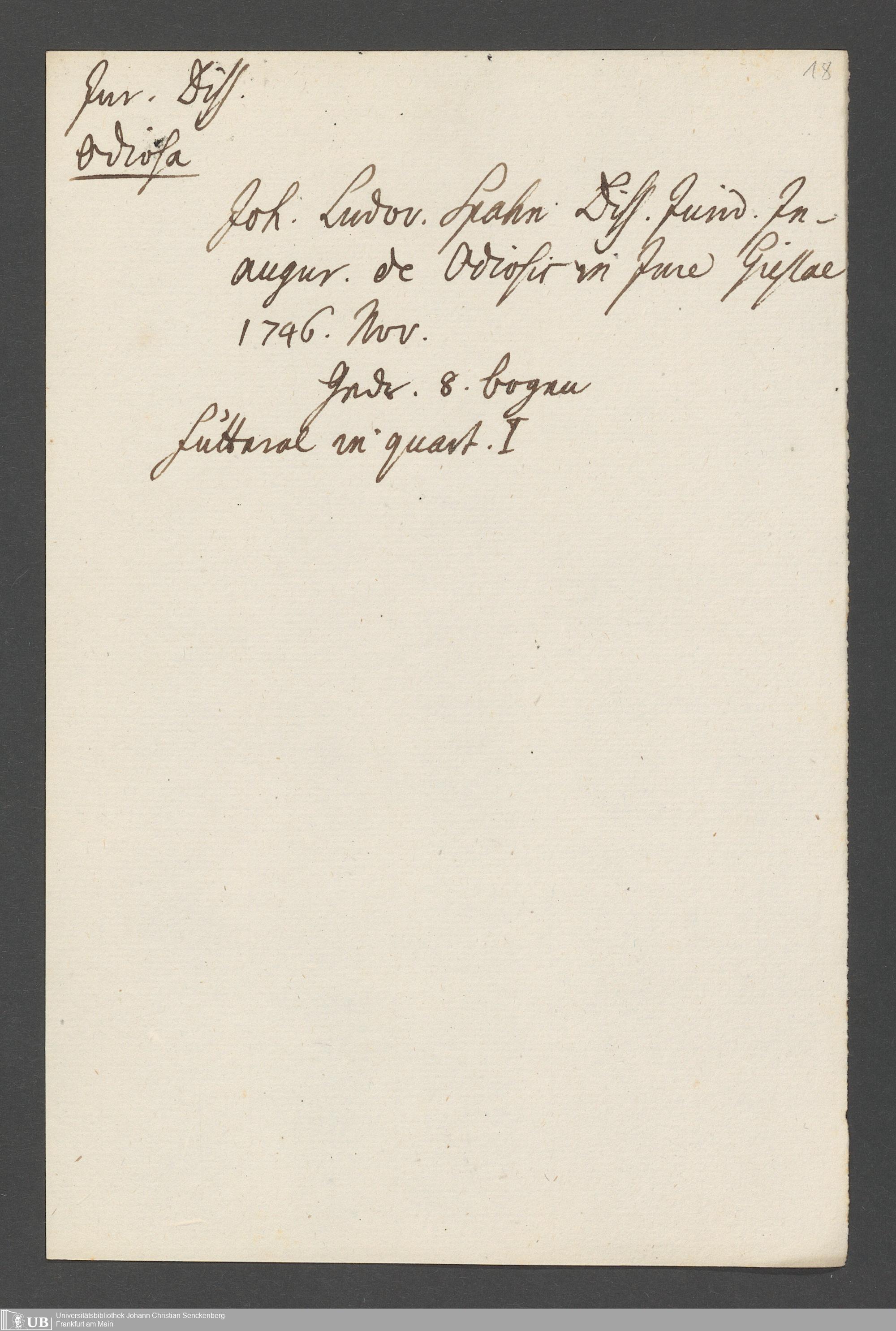 Nachlass Johann Christian Senckenberg