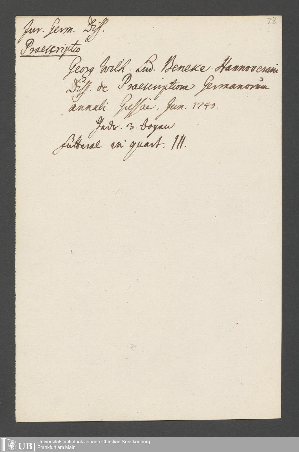 Nachlass Johann Christian Senckenberg