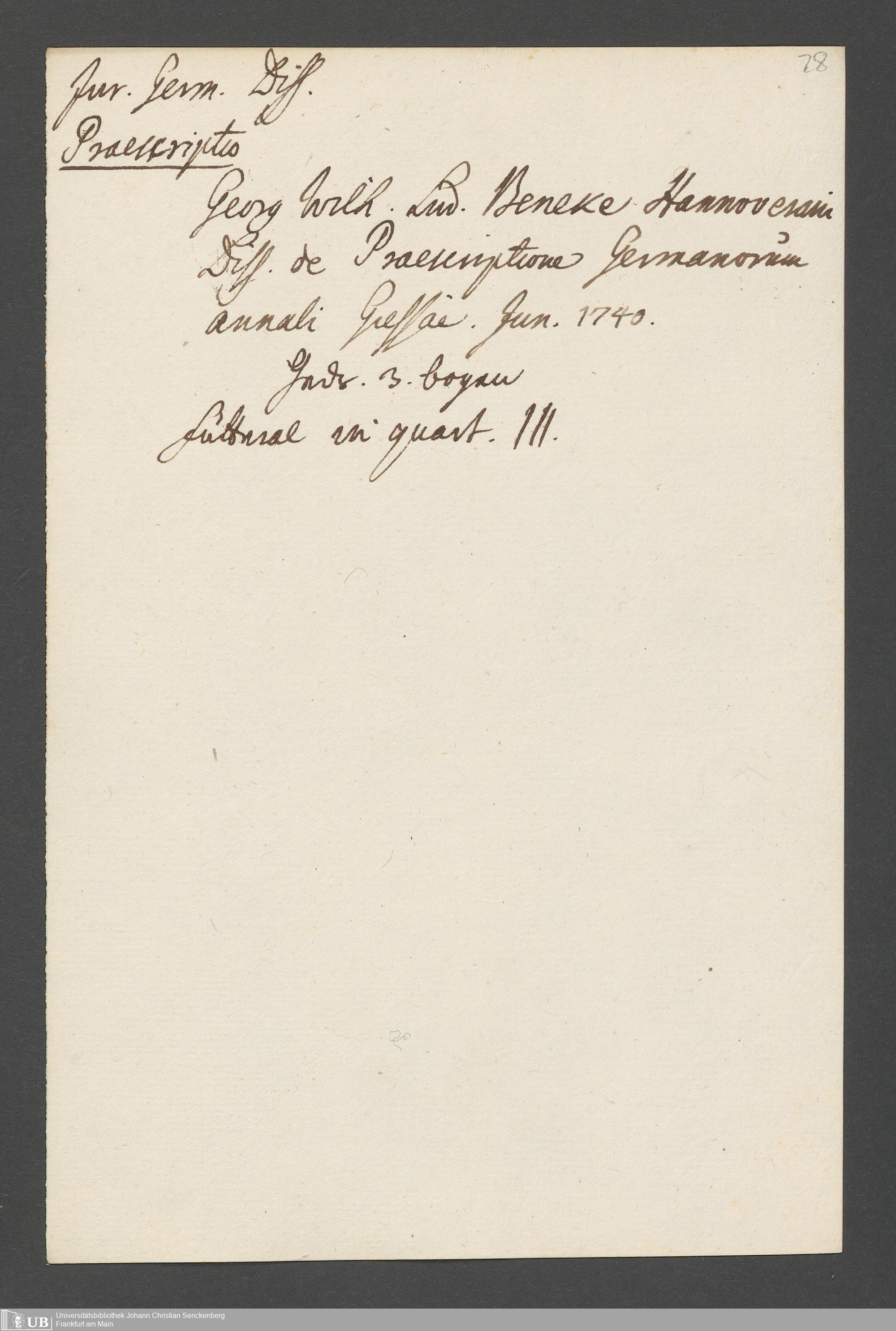 Nachlass Johann Wilhelm Boegner