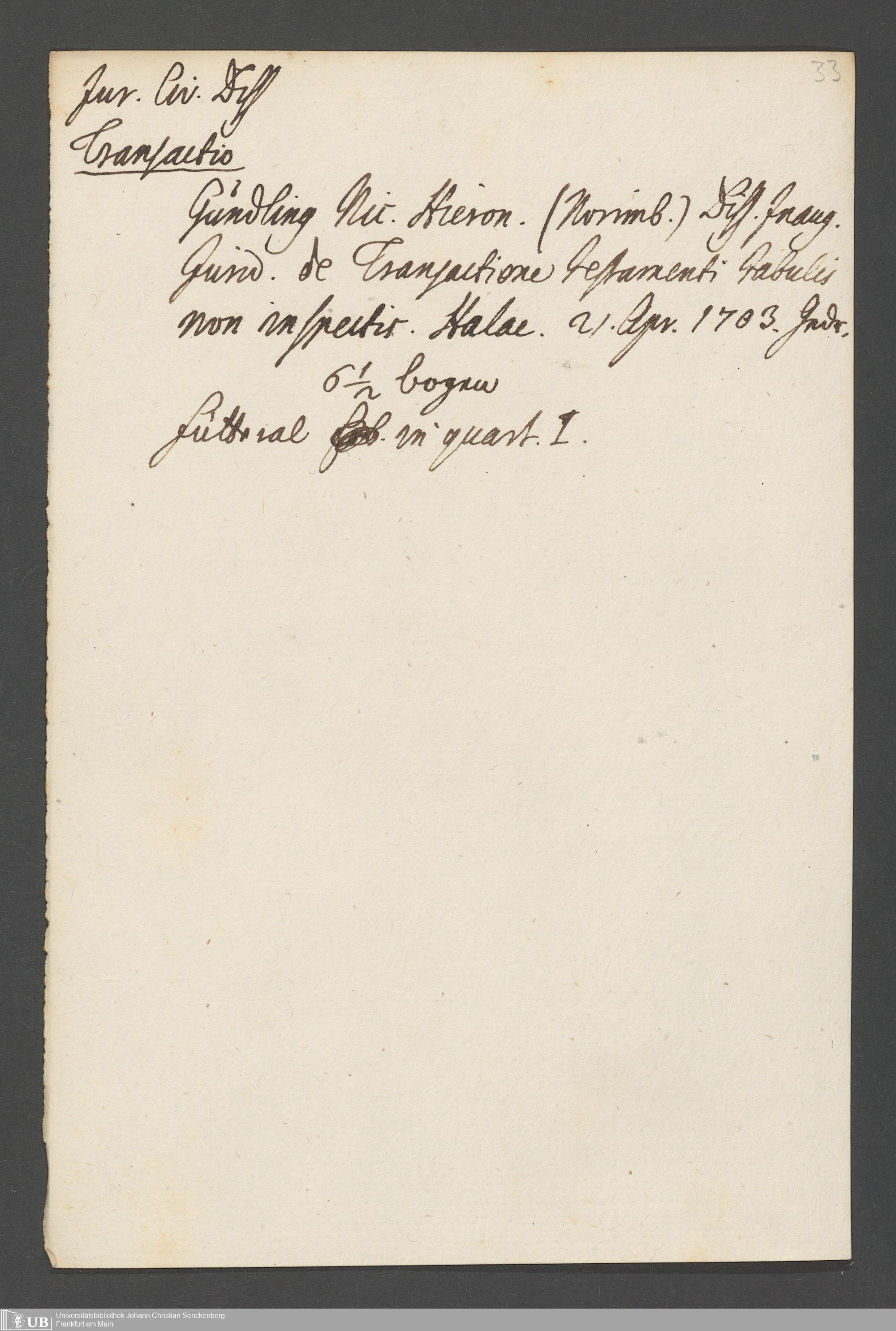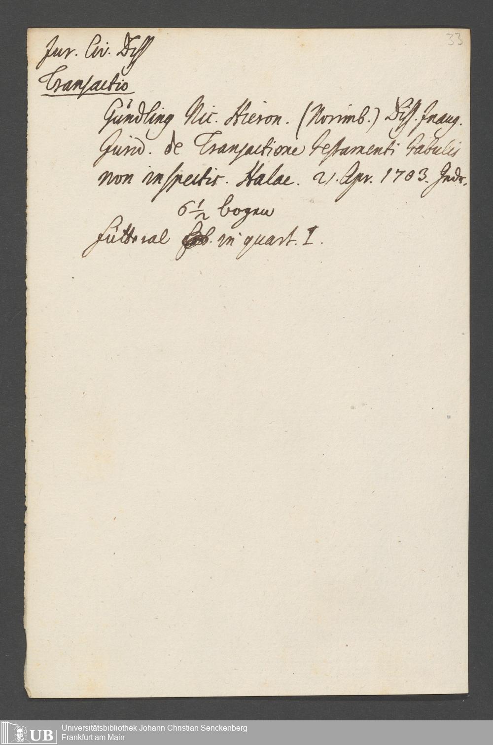 Na 31 Nachlass Johann Christian Senckenberg, 76 - Verzeichnis von Büchern und Manuskripten im Besitze des Erasmus Senckenberg