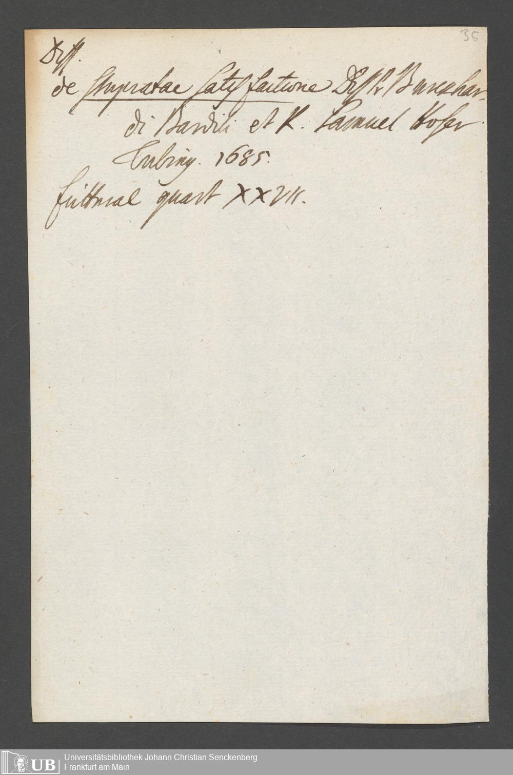 Na 31 Nachlass Johann Christian Senckenberg, 76 - Verzeichnis von Büchern und Manuskripten im Besitze des Erasmus Senckenberg