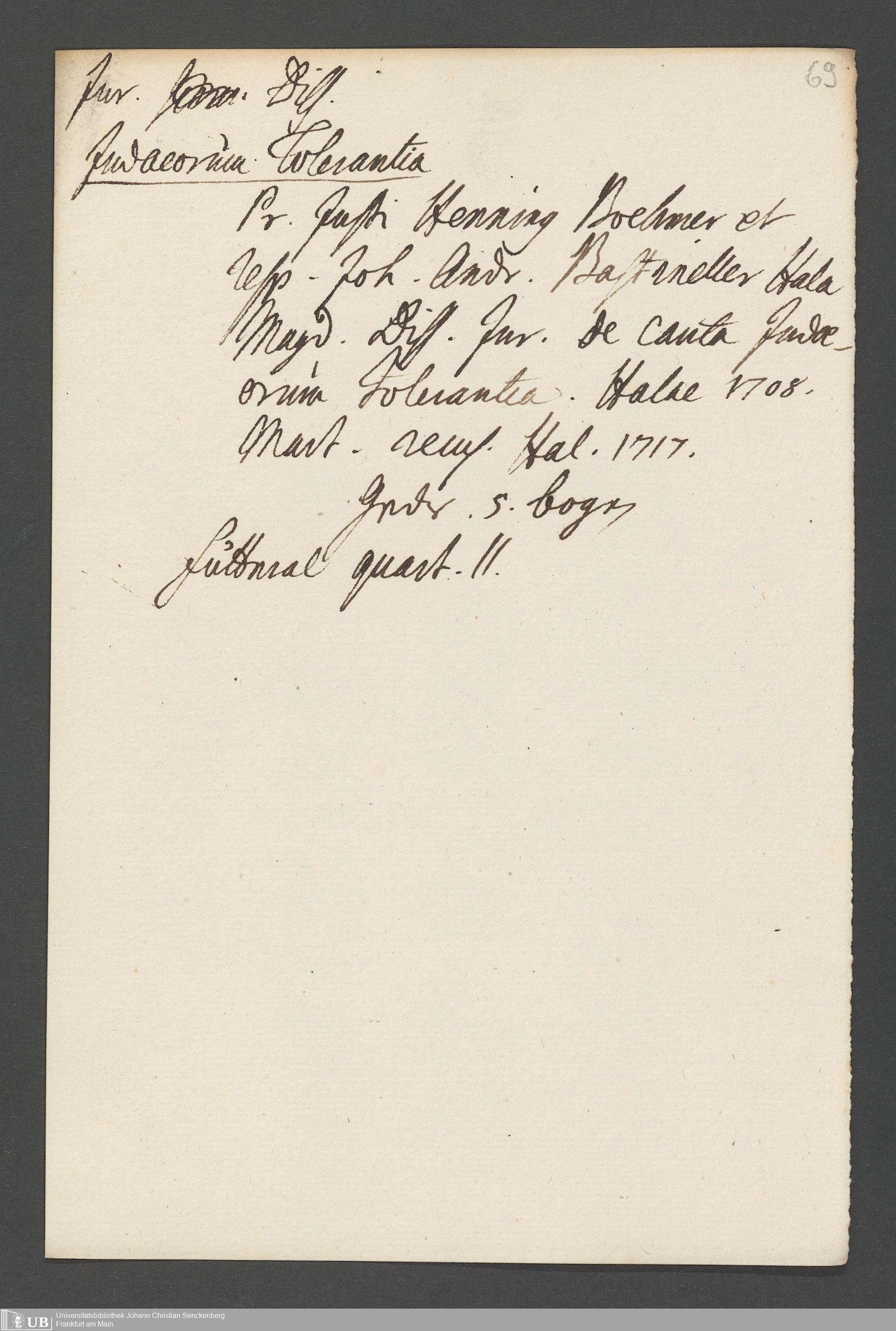 Na 31 Nachlass Johann Christian Senckenberg, 76 - Verzeichnis von Büchern und Manuskripten im Besitze des Erasmus Senckenberg