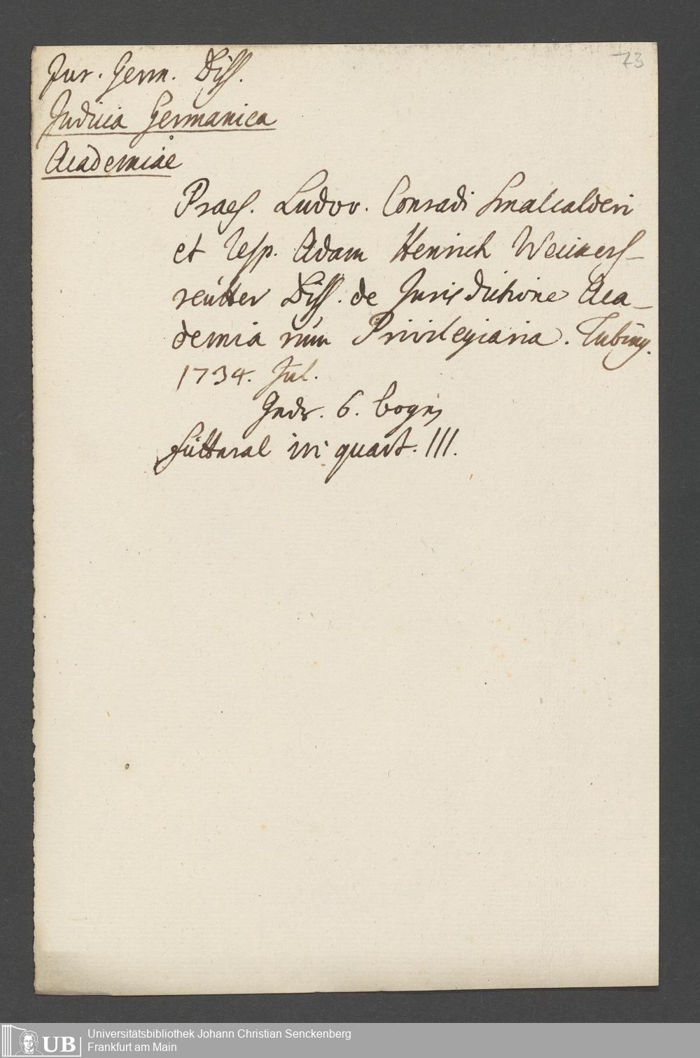 Nachlass Johann Christian Senckenberg