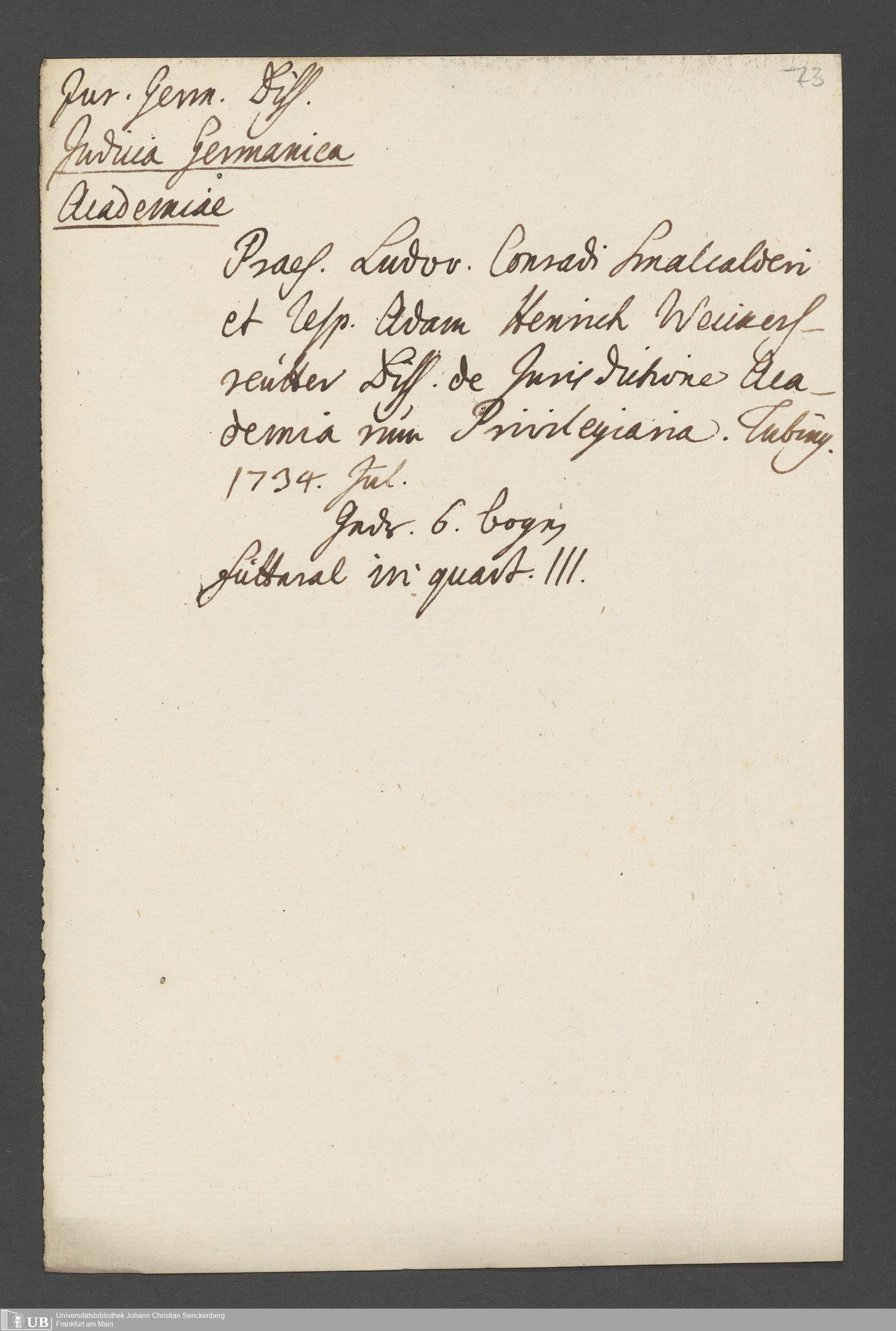Nachlass Johann Wilhelm Boegner
