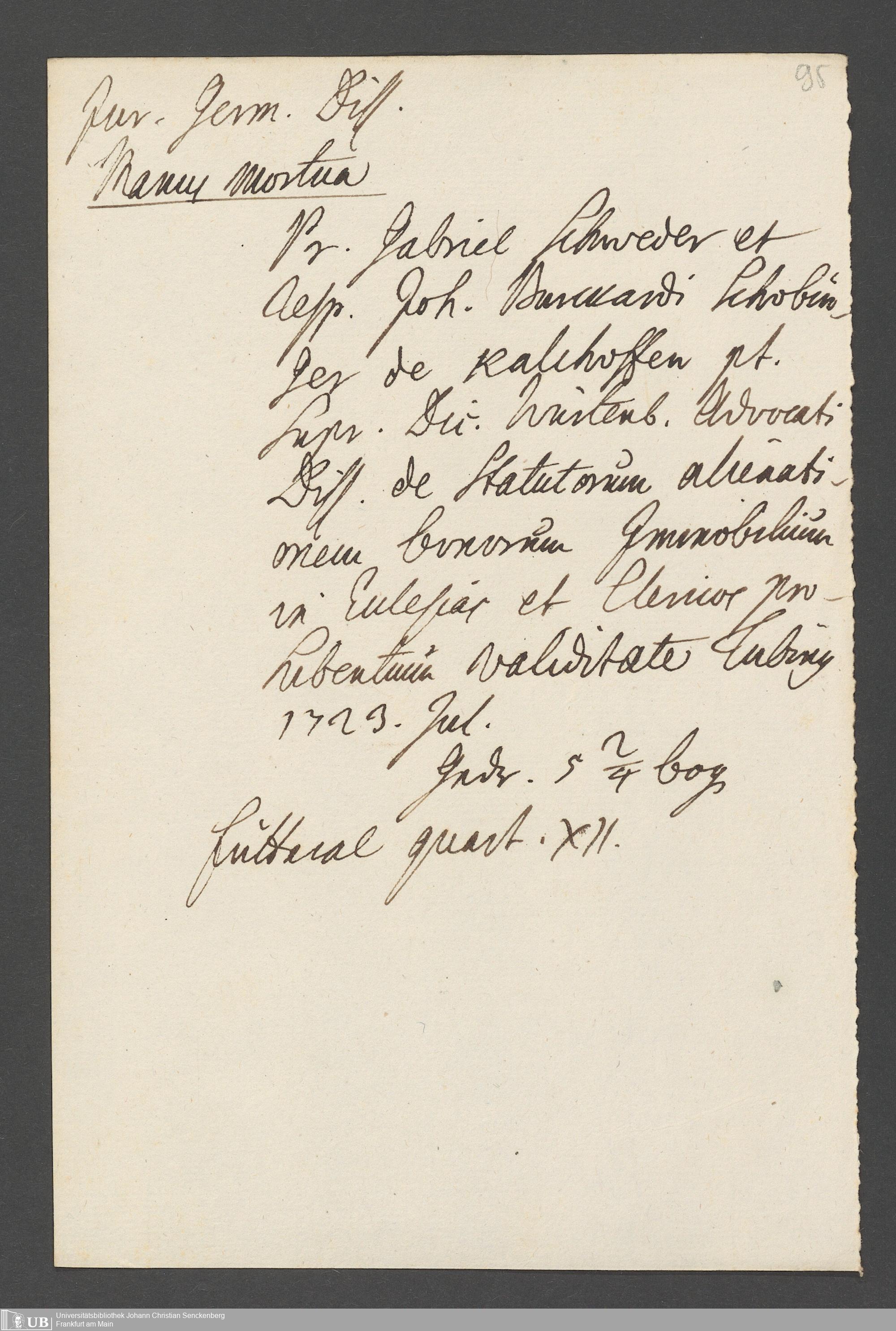 Nachlass Johann Christian Senckenberg