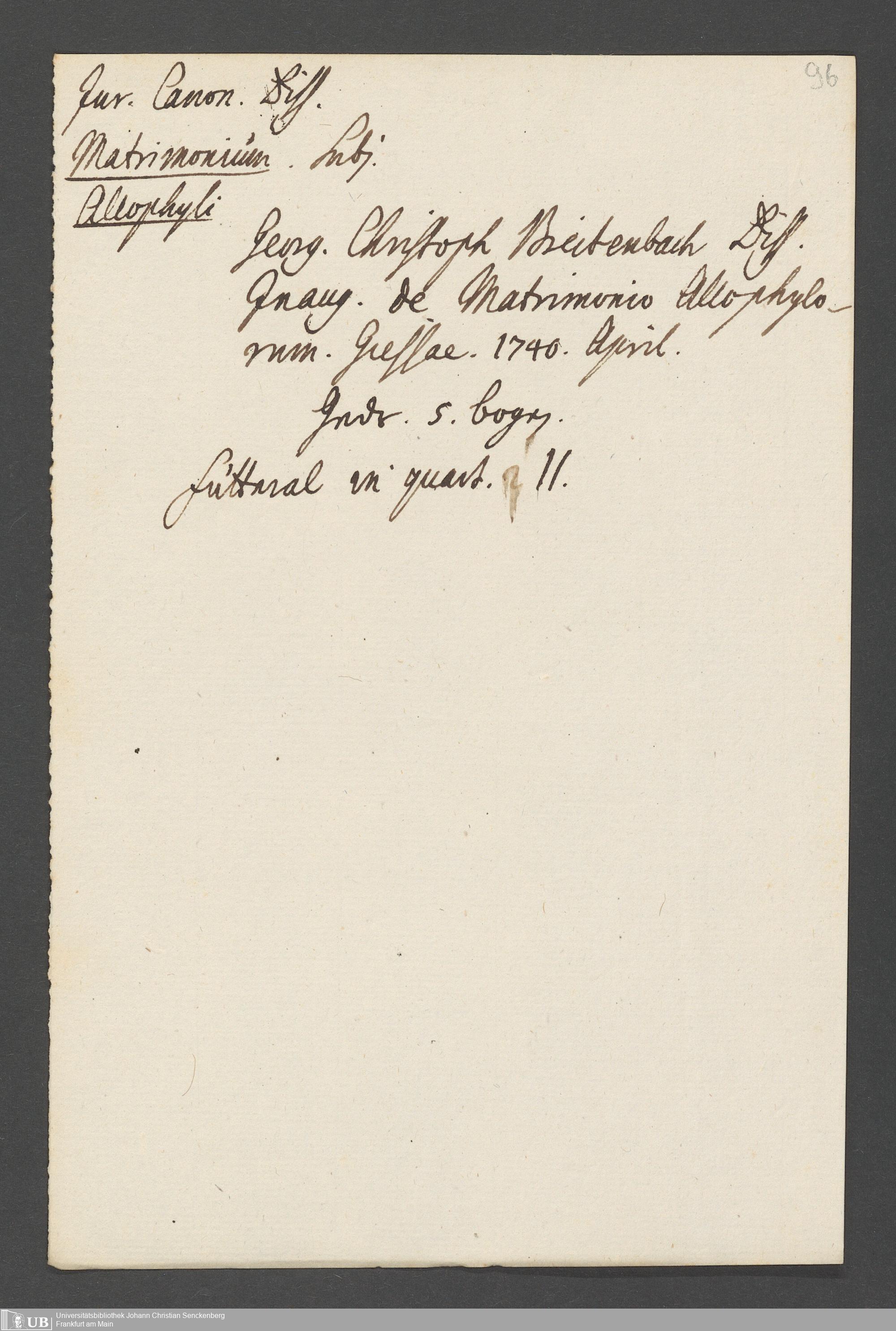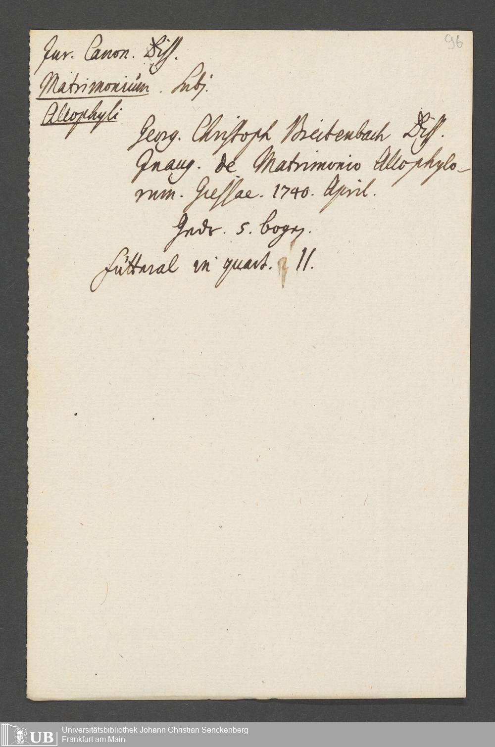 Nachlass Johann Christian Senckenberg