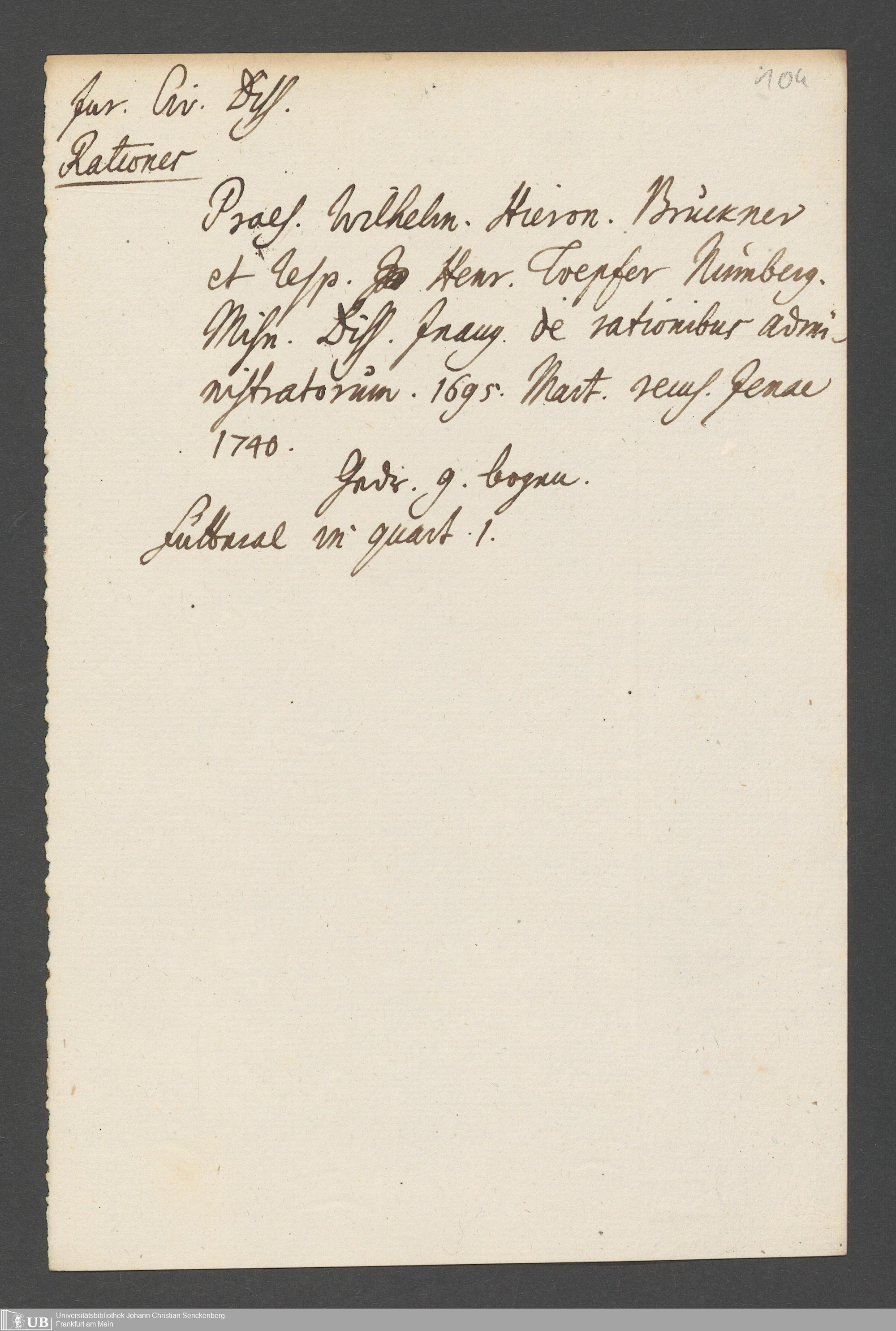 Na 31 Nachlass Johann Christian Senckenberg, 76 - Verzeichnis von Büchern und Manuskripten im Besitze des Erasmus Senckenberg