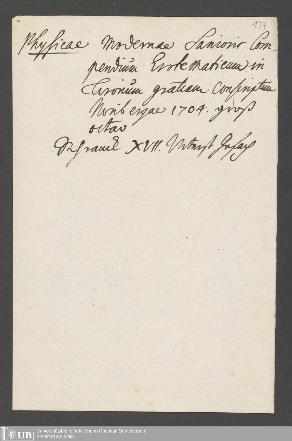 Nachlass Johann Christian Senckenberg