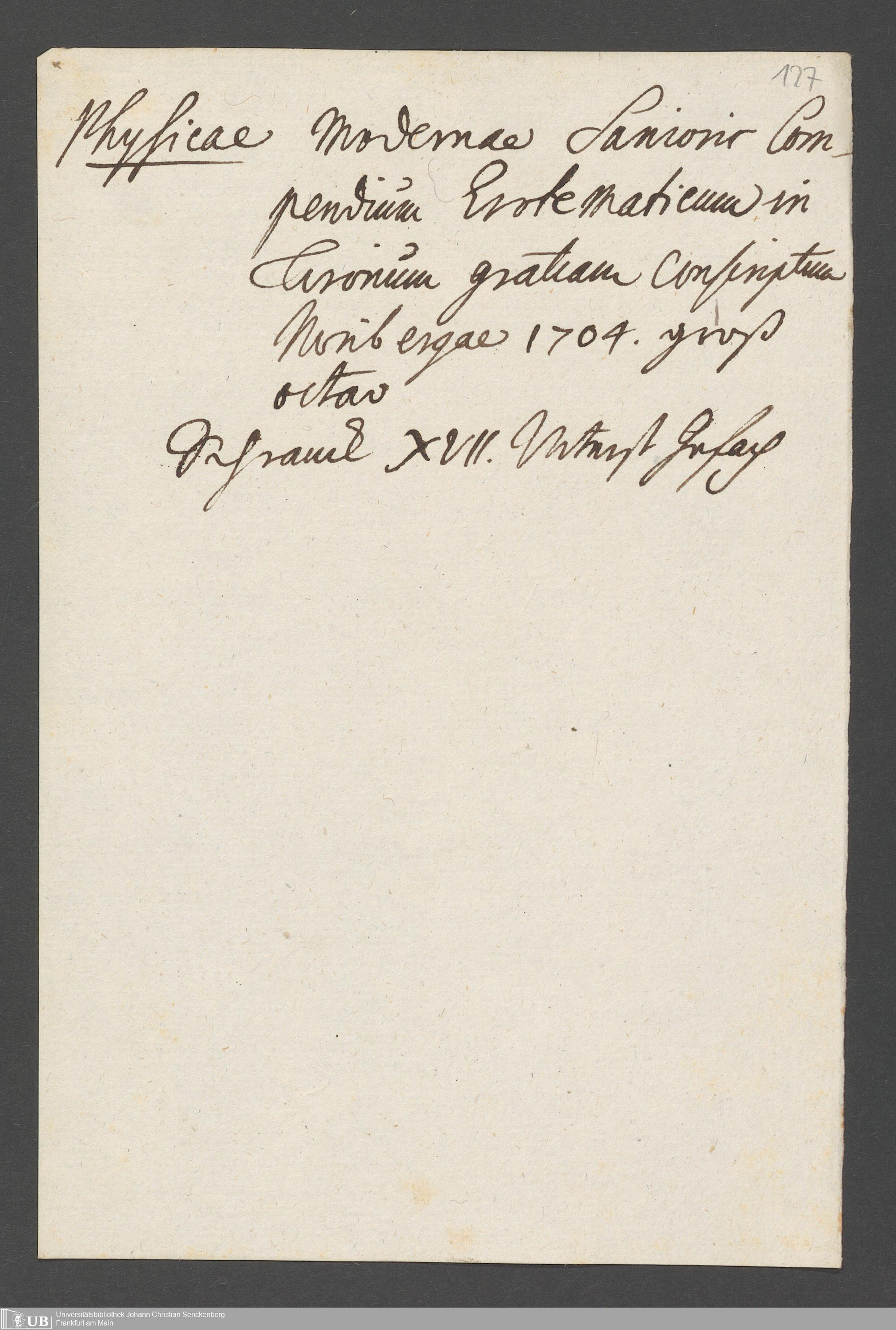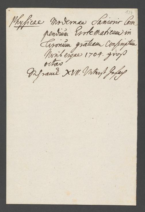 Na 31 Nachlass Johann Christian Senckenberg, 76 - Verzeichnis von Büchern und Manuskripten im Besitze des Erasmus Senckenberg