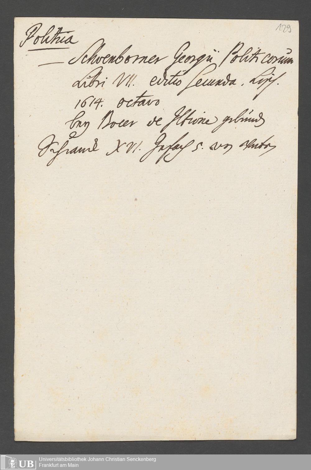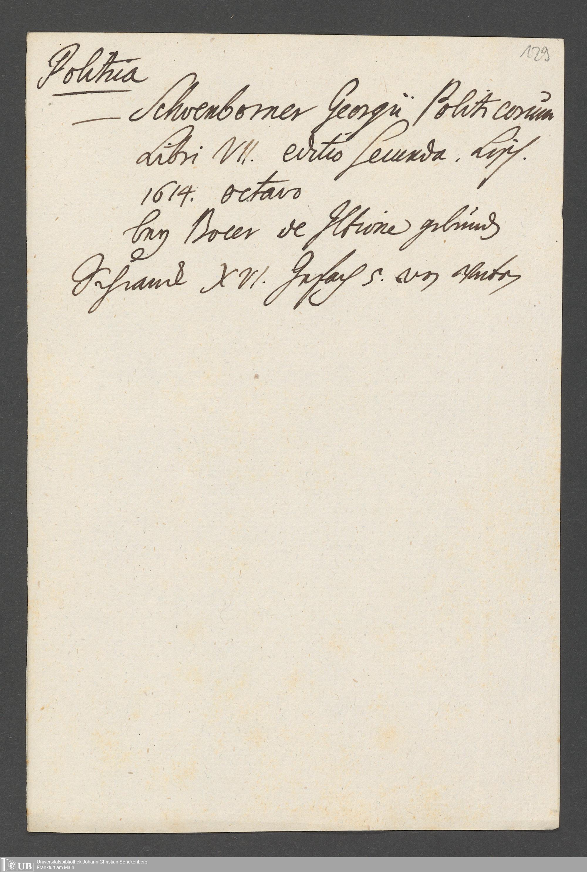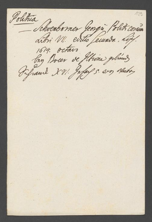 Na 31 Nachlass Johann Christian Senckenberg, 76 - Verzeichnis von Büchern und Manuskripten im Besitze des Erasmus Senckenberg