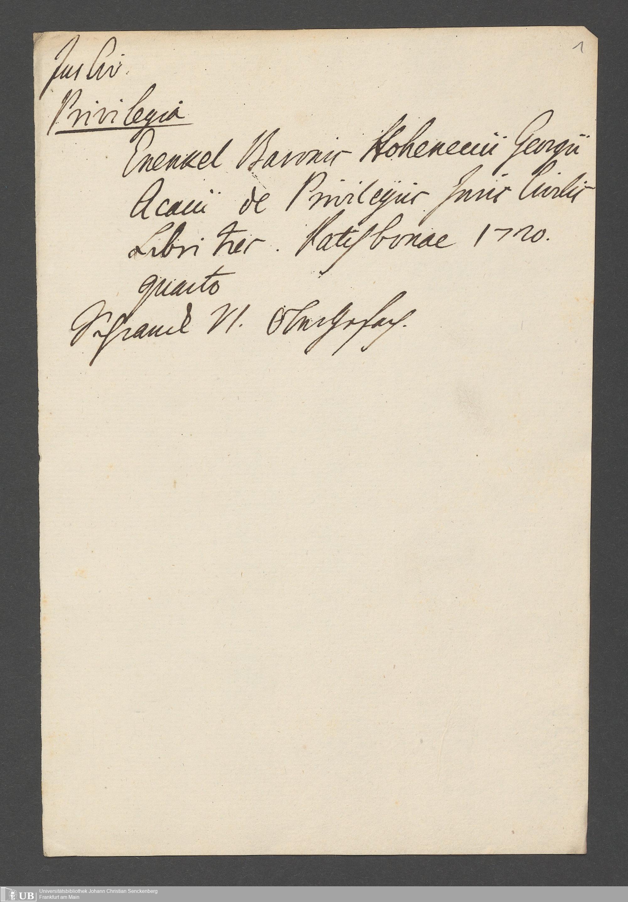 Na 31 Nachlass Johann Christian Senckenberg, 77 - Verzeichnis von Büchern und Manuskripten im Besitze des Erasmus Senckenberg