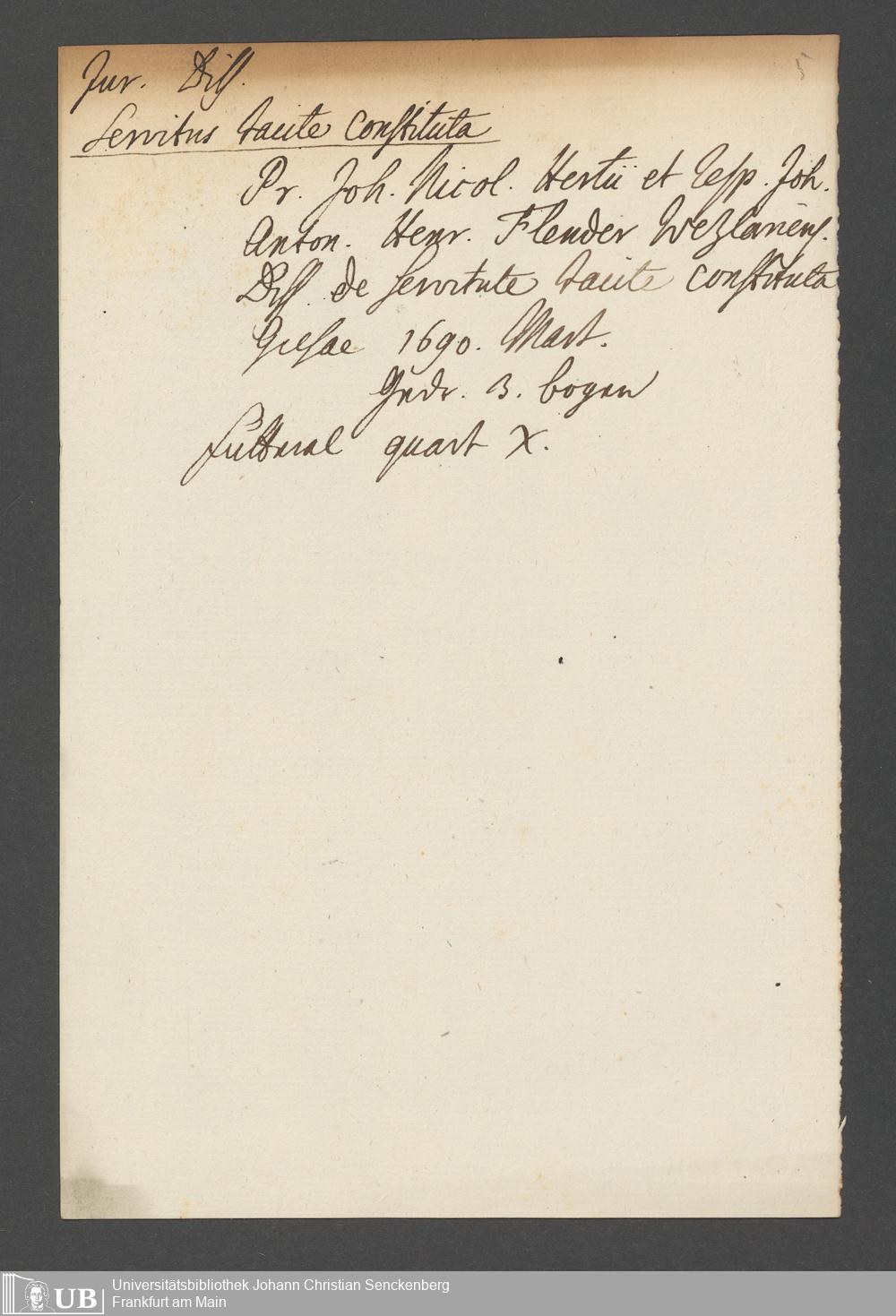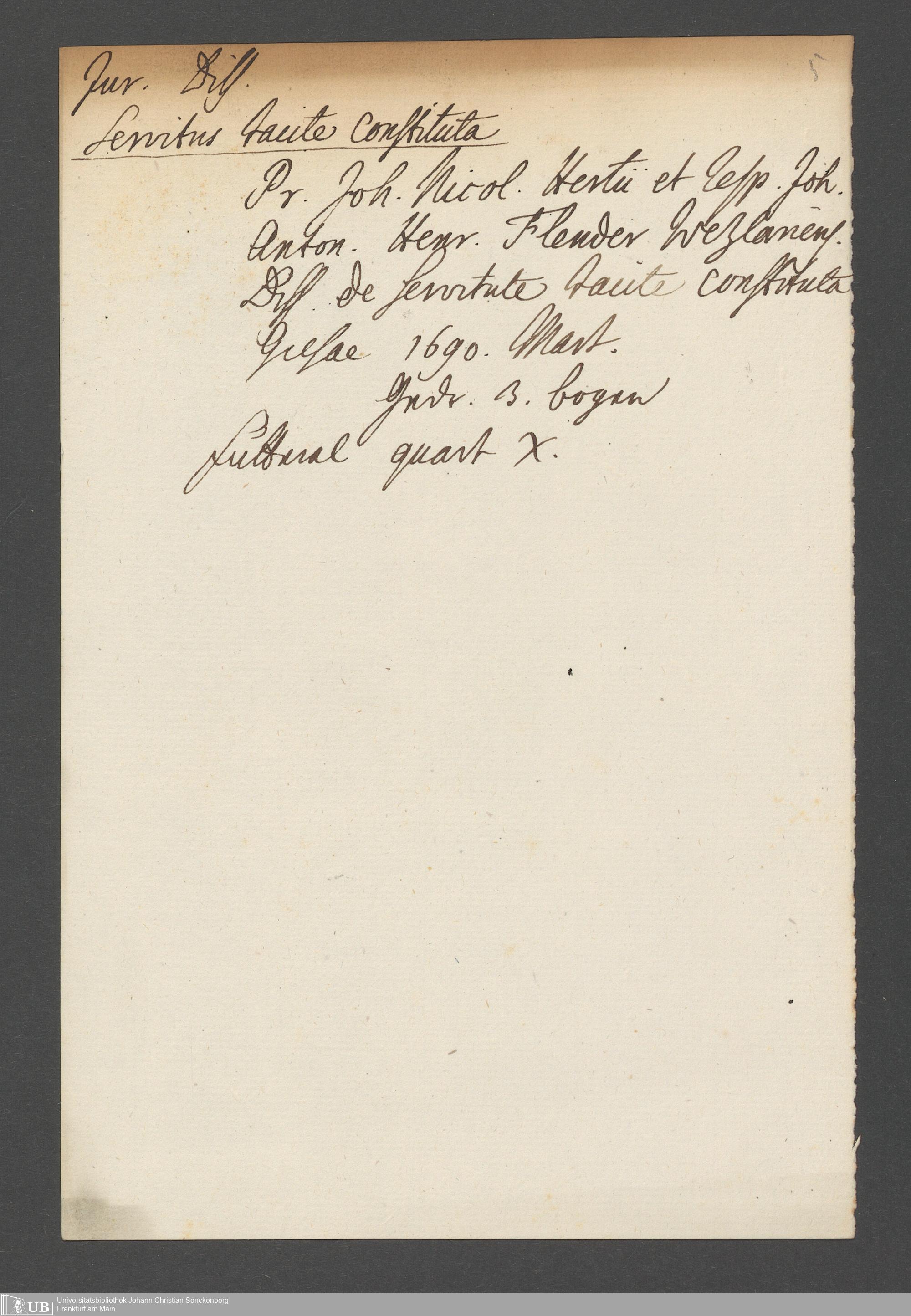 Na 31 Nachlass Johann Christian Senckenberg, 77 - Verzeichnis von Büchern und Manuskripten im Besitze des Erasmus Senckenberg