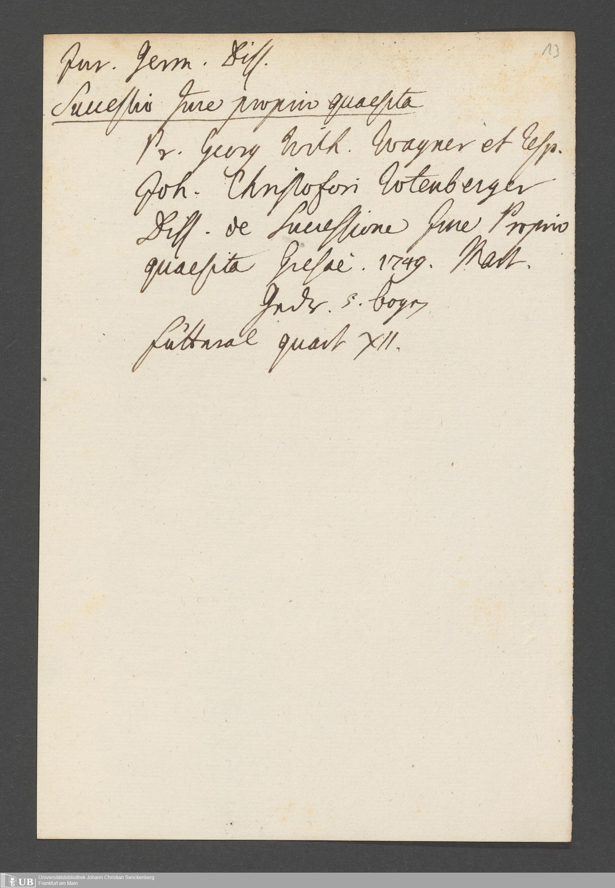 Nachlass Johann Christian Senckenberg
