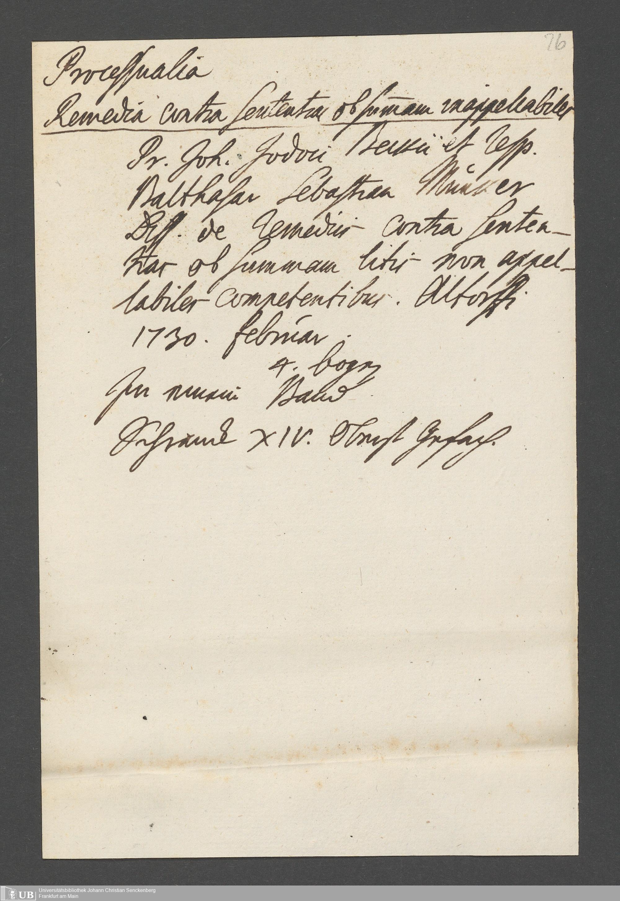 Nachlass Johann Christian Senckenberg