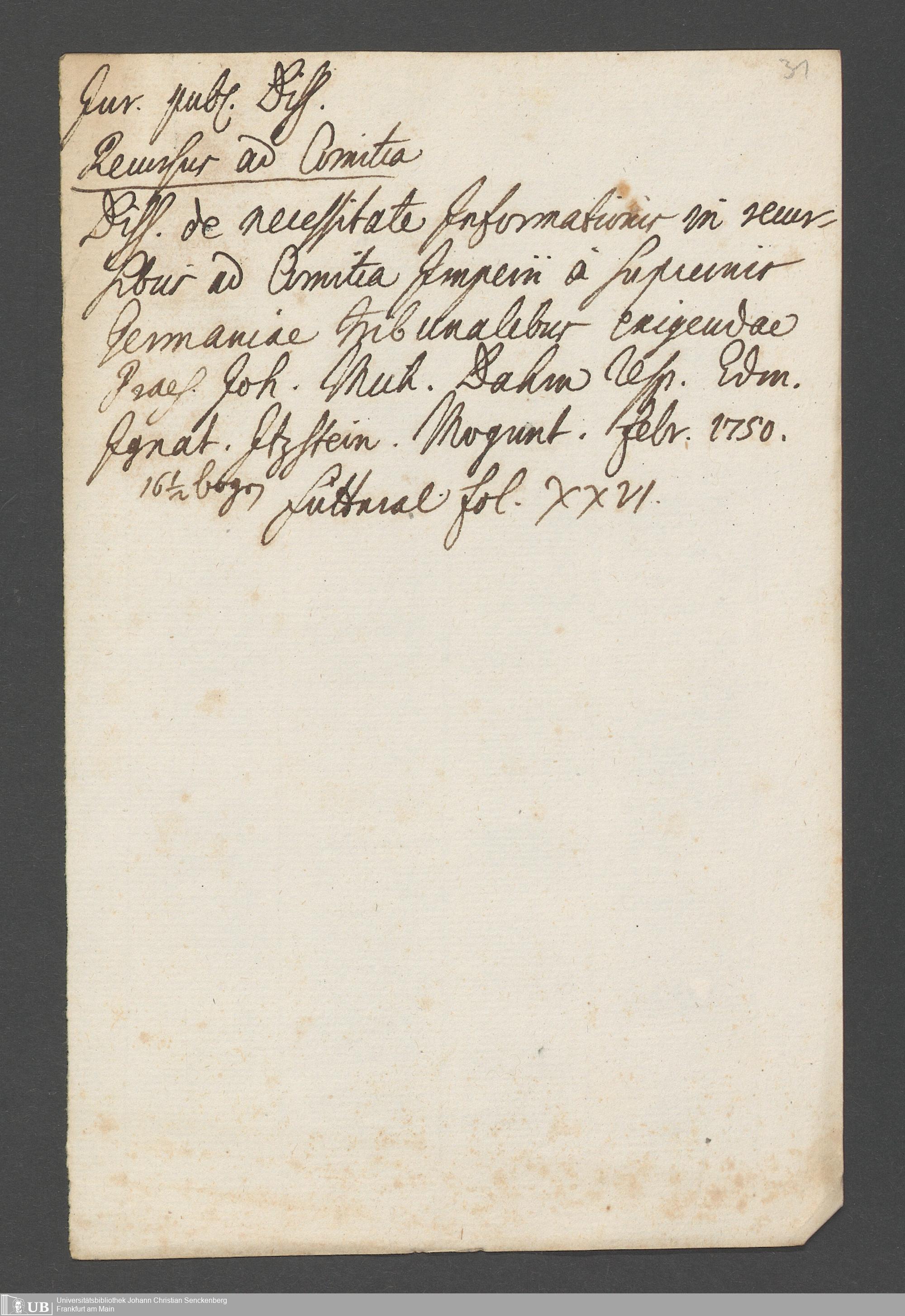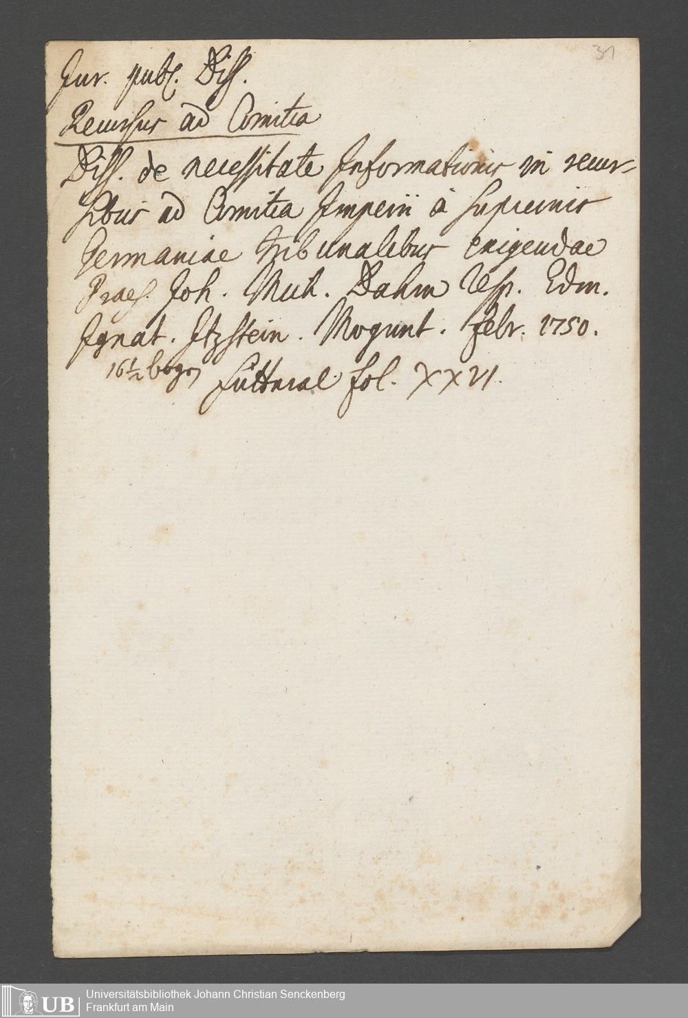 Nachlass Johann Christian Senckenberg