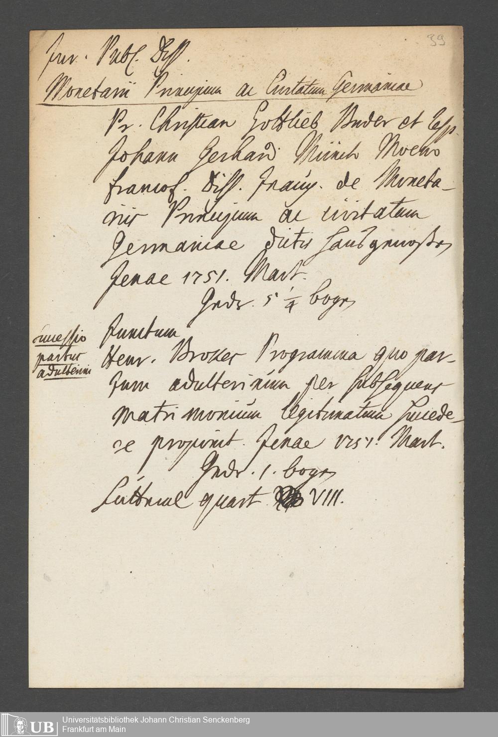 Nachlass Johann Christian Senckenberg