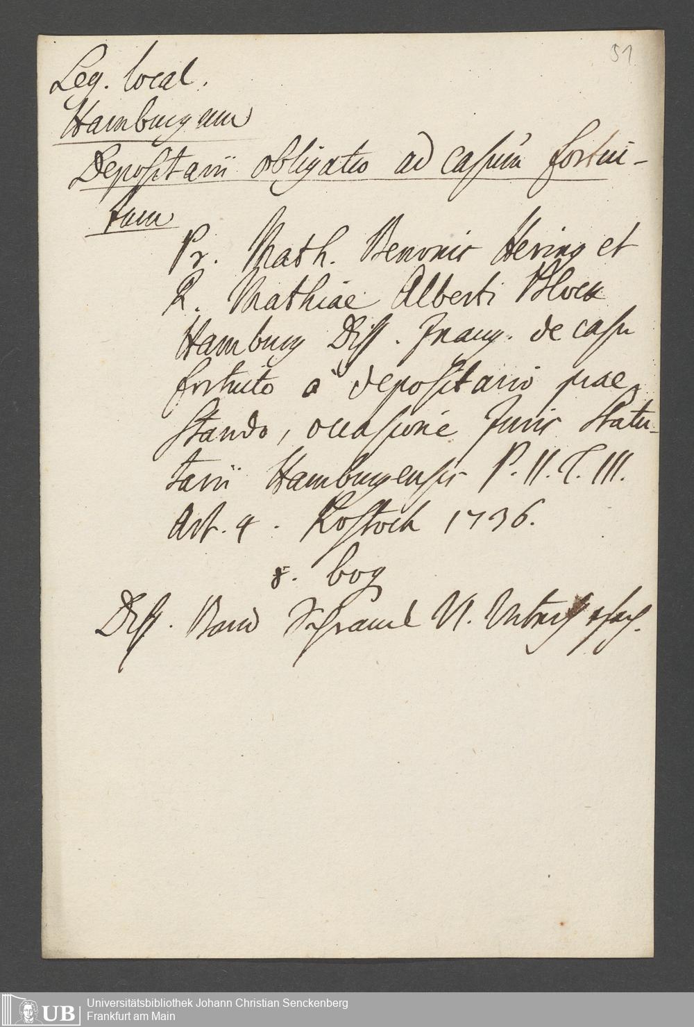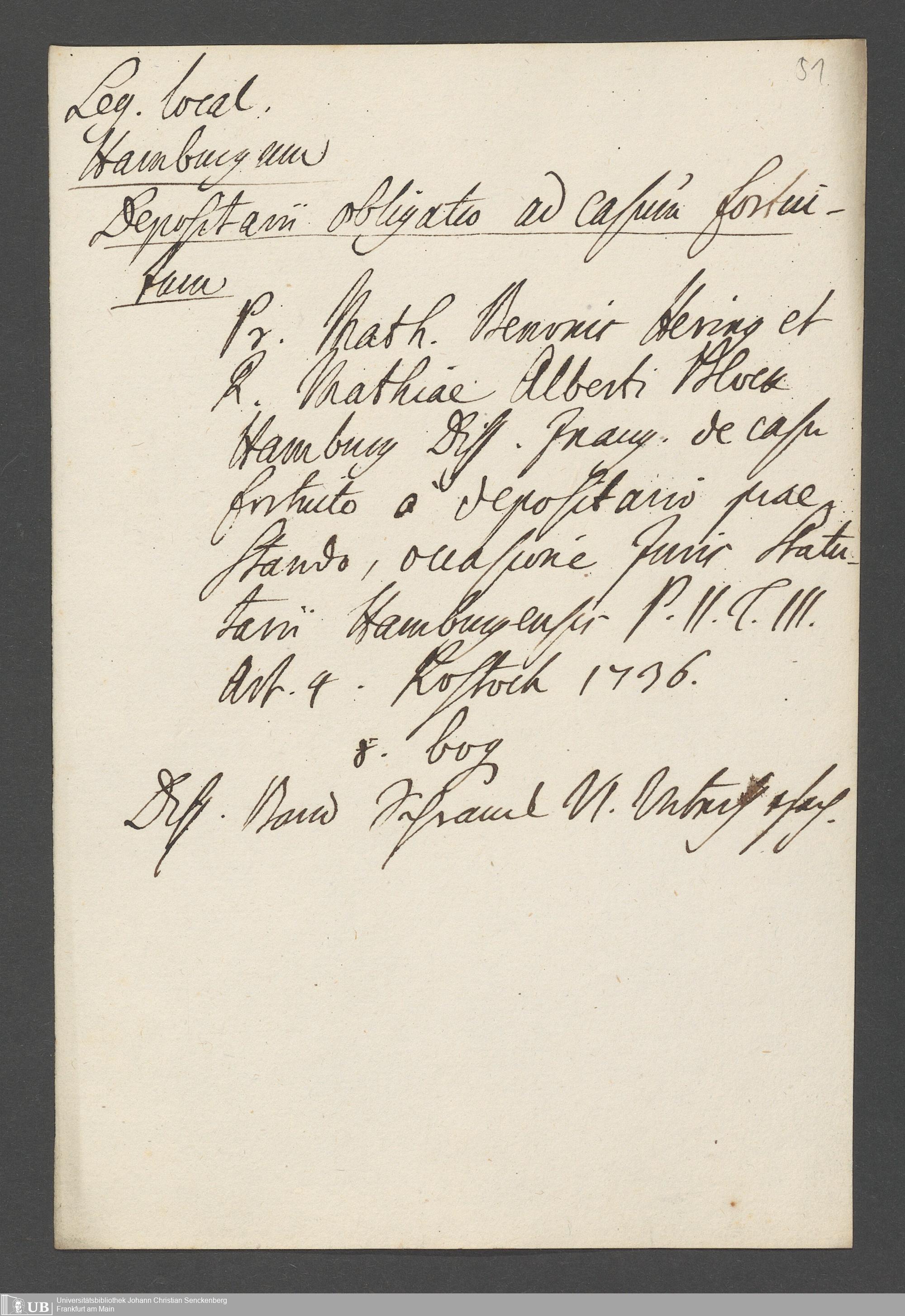 Na 31 Nachlass Johann Christian Senckenberg, 77 - Verzeichnis von Büchern und Manuskripten im Besitze des Erasmus Senckenberg