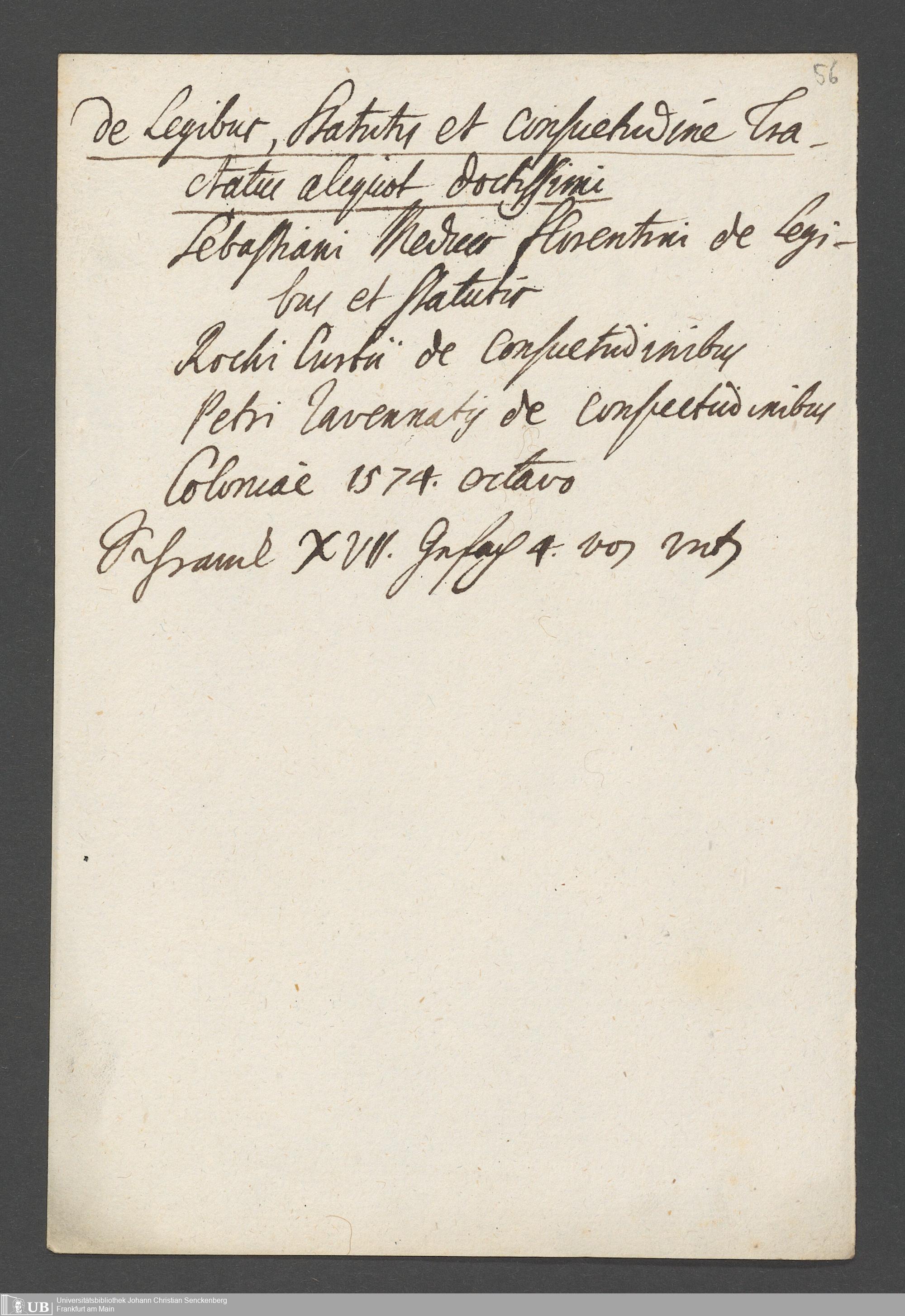 Na 31 Nachlass Johann Christian Senckenberg, 77 - Verzeichnis von Büchern und Manuskripten im Besitze des Erasmus Senckenberg