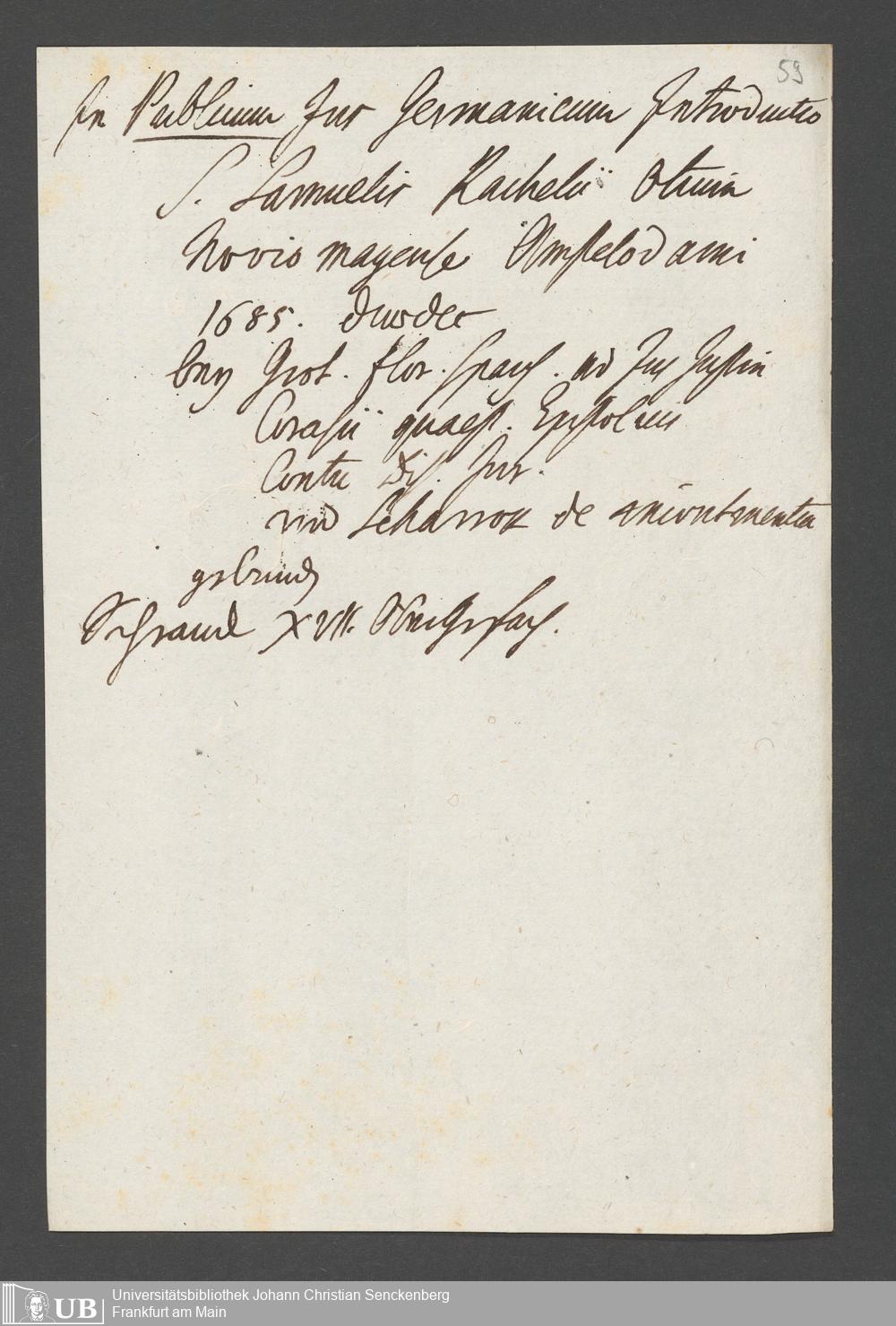 Na 31 Nachlass Johann Christian Senckenberg, 77 - Verzeichnis von Büchern und Manuskripten im Besitze des Erasmus Senckenberg