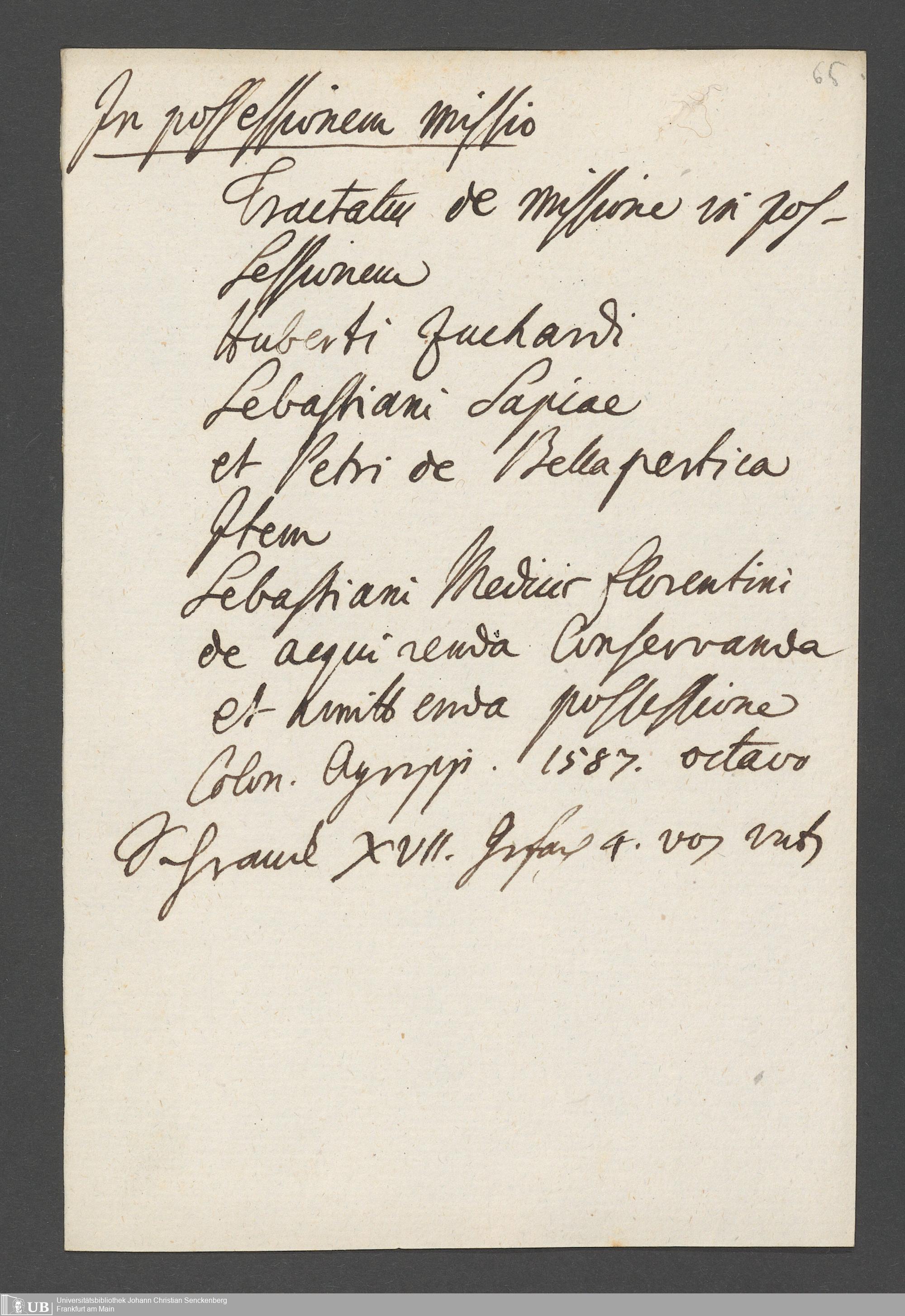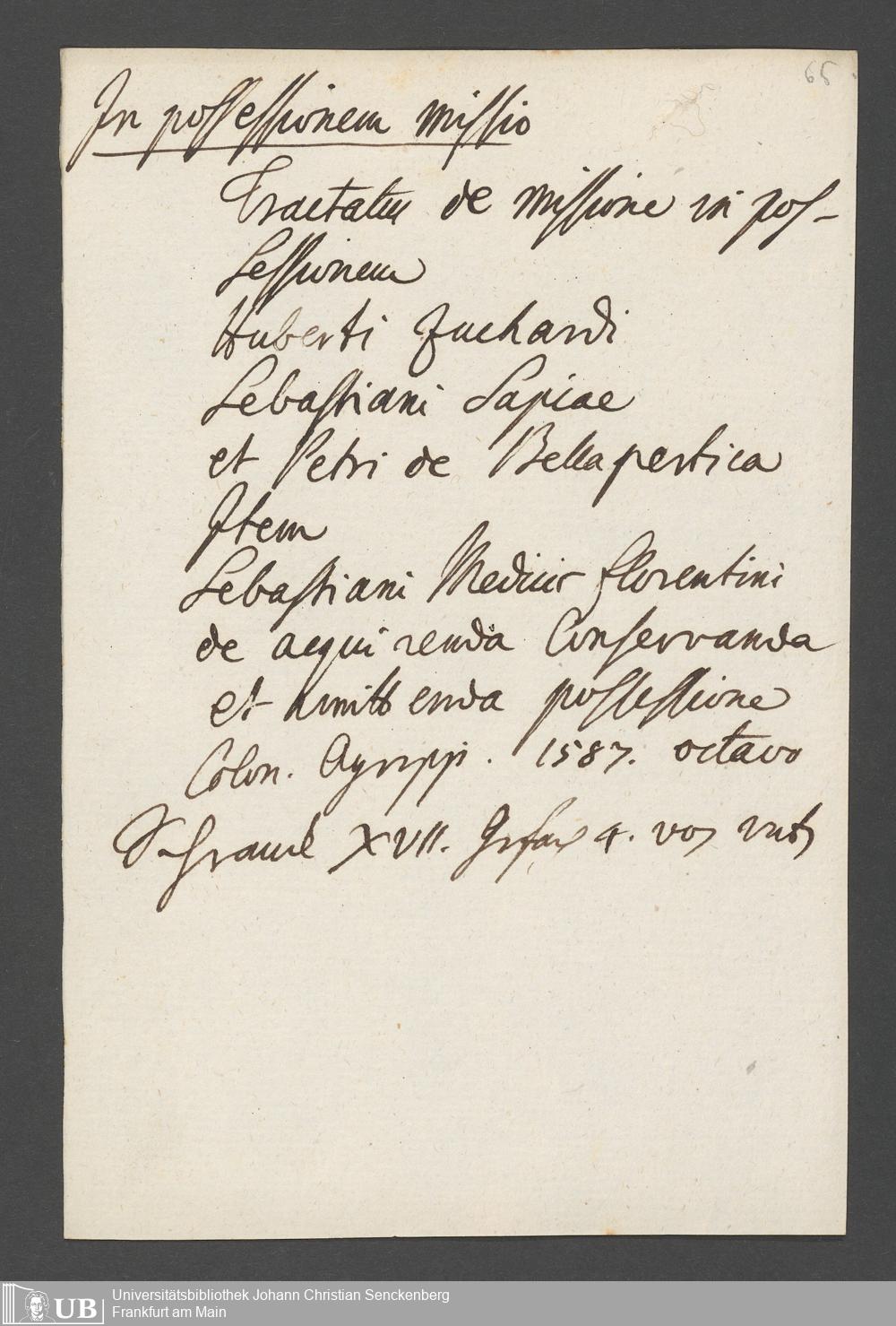Na 31 Nachlass Johann Christian Senckenberg, 77 - Verzeichnis von Büchern und Manuskripten im Besitze des Erasmus Senckenberg