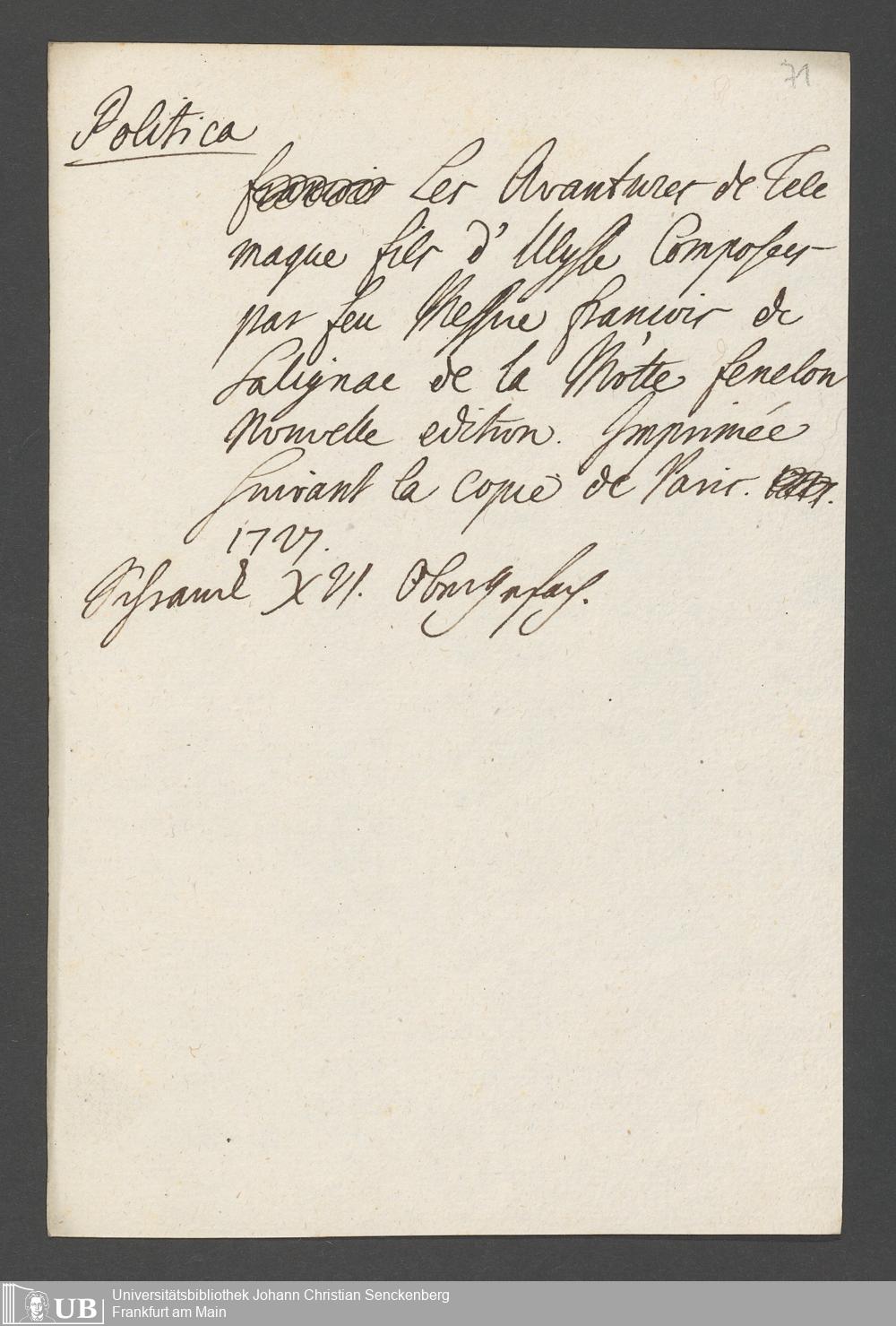 Na 31 Nachlass Johann Christian Senckenberg, 77 - Verzeichnis von Büchern und Manuskripten im Besitze des Erasmus Senckenberg