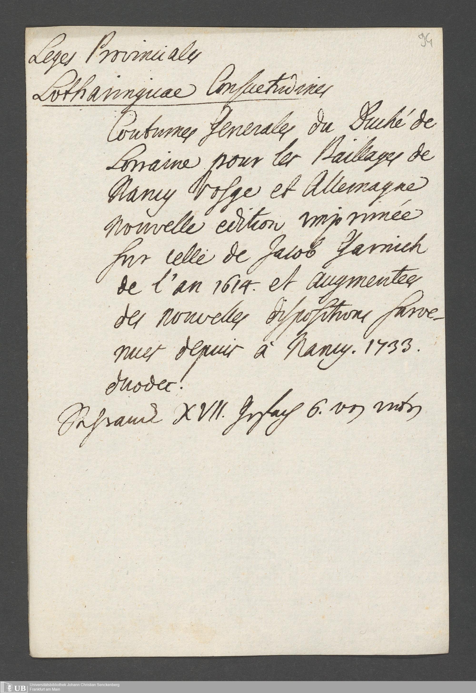 Na 31 Nachlass Johann Christian Senckenberg, 77 - Verzeichnis von Büchern und Manuskripten im Besitze des Erasmus Senckenberg