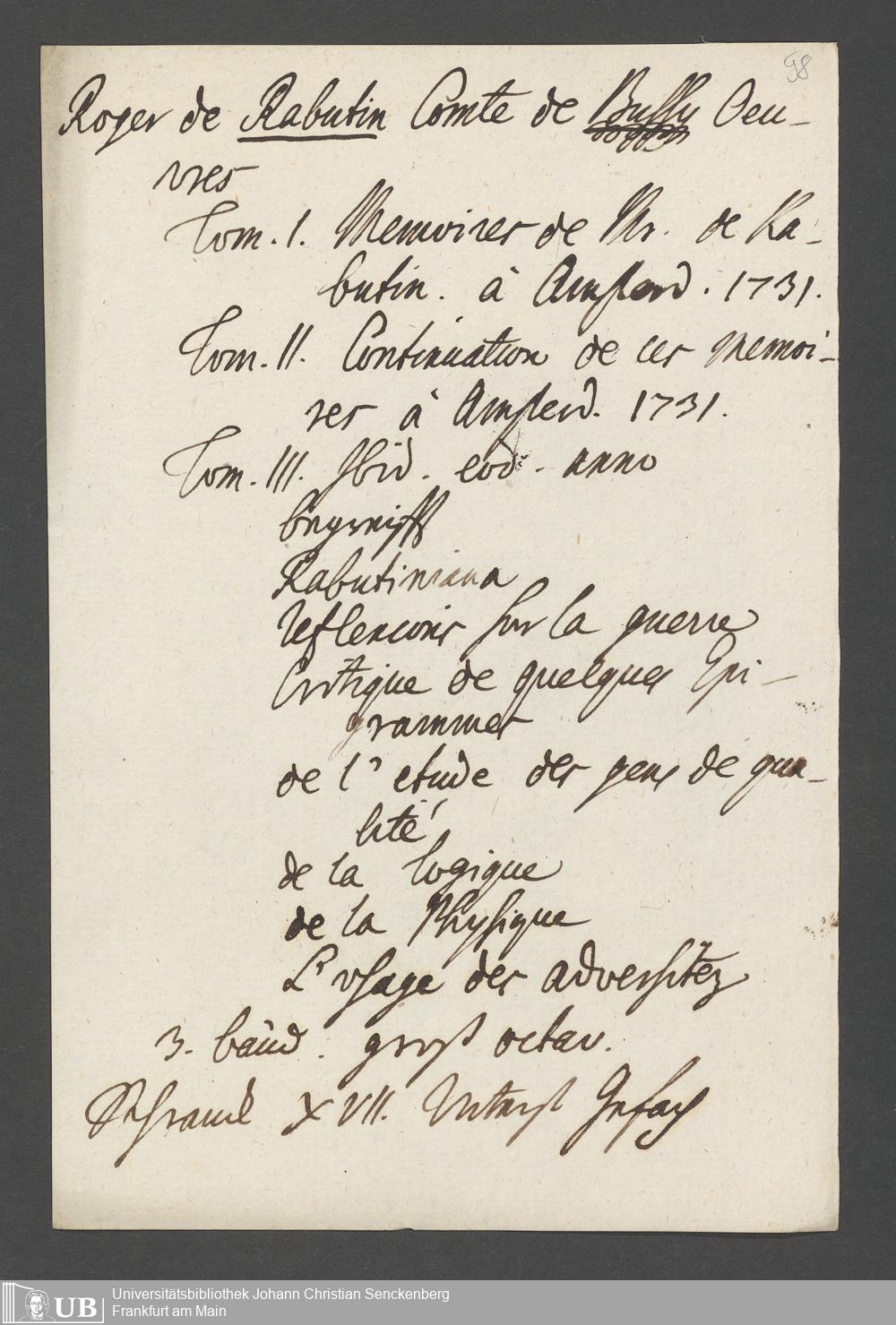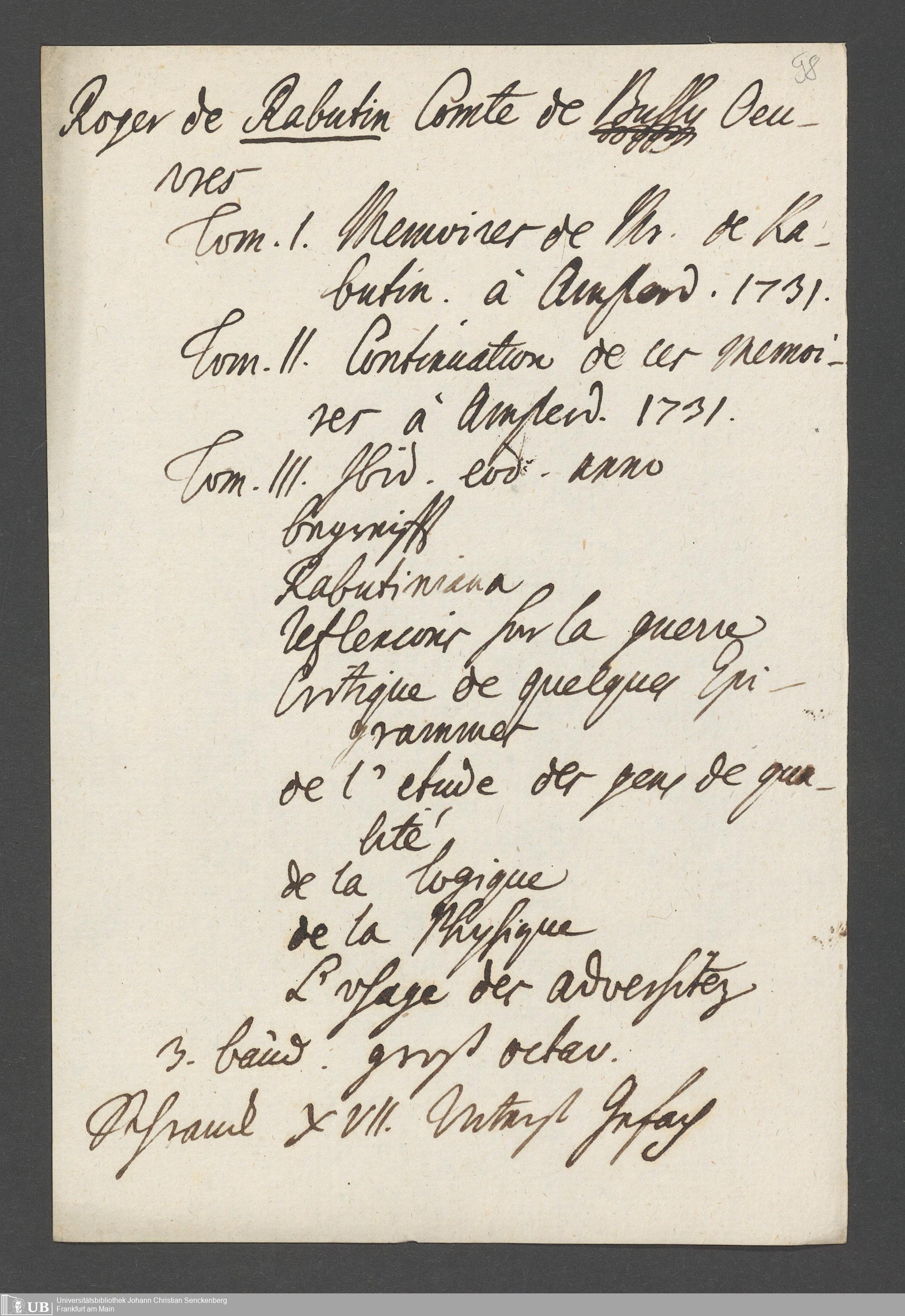 Na 31 Nachlass Johann Christian Senckenberg, 77 - Verzeichnis von Büchern und Manuskripten im Besitze des Erasmus Senckenberg