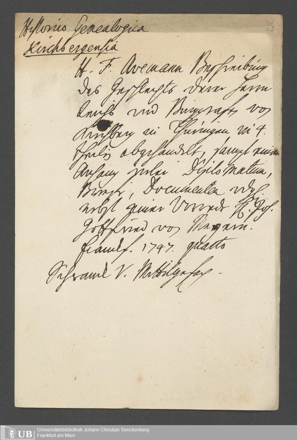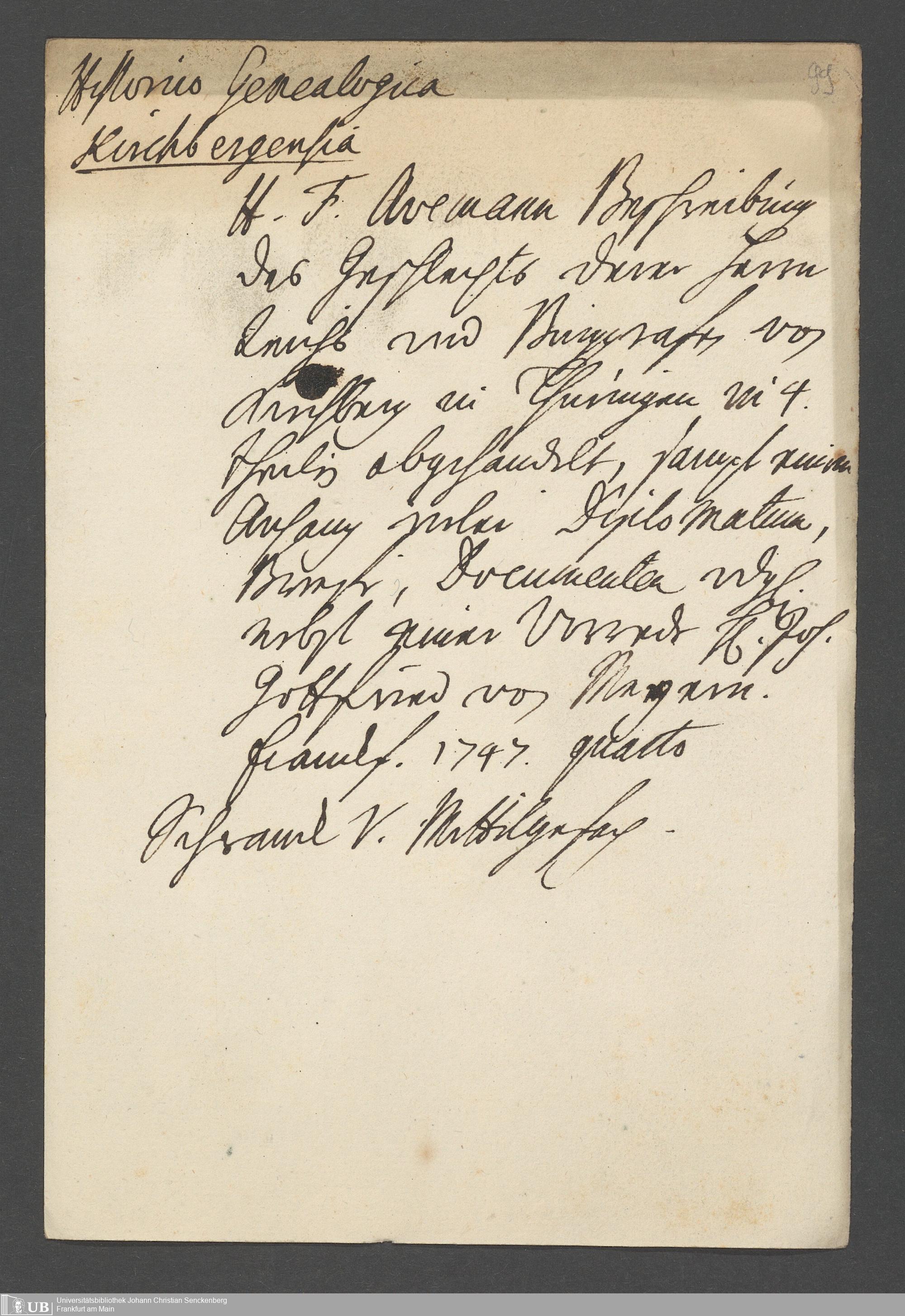 Na 31 Nachlass Johann Christian Senckenberg, 77 - Verzeichnis von Büchern und Manuskripten im Besitze des Erasmus Senckenberg