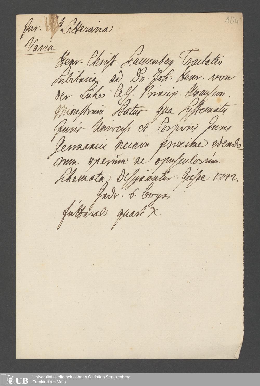 Nachlass Johann Christian Senckenberg