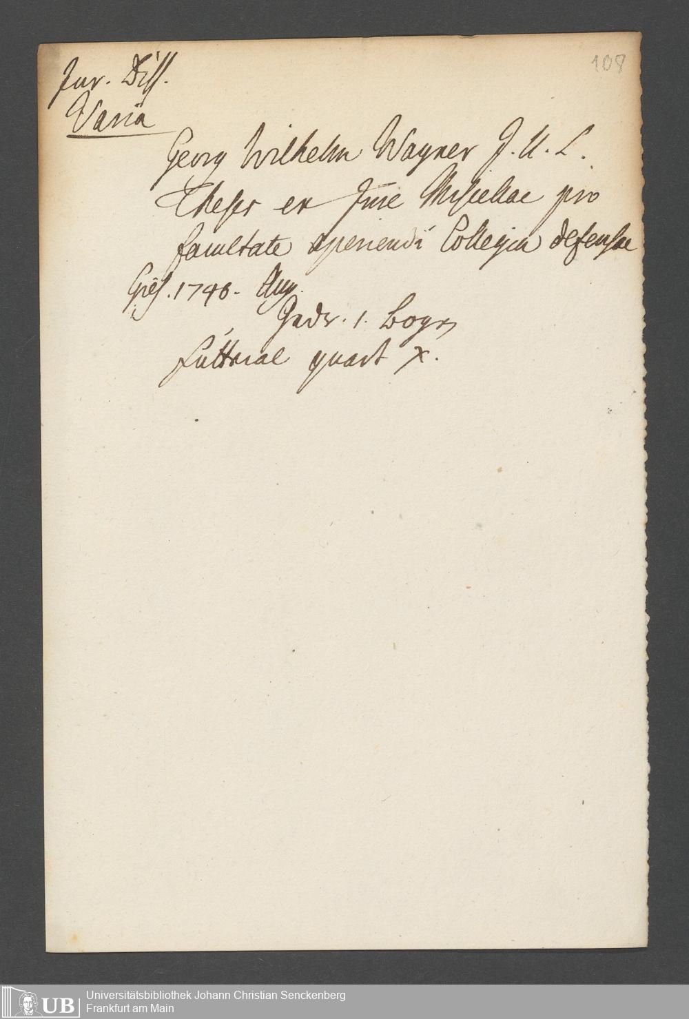 Nachlass Johann Christian Senckenberg