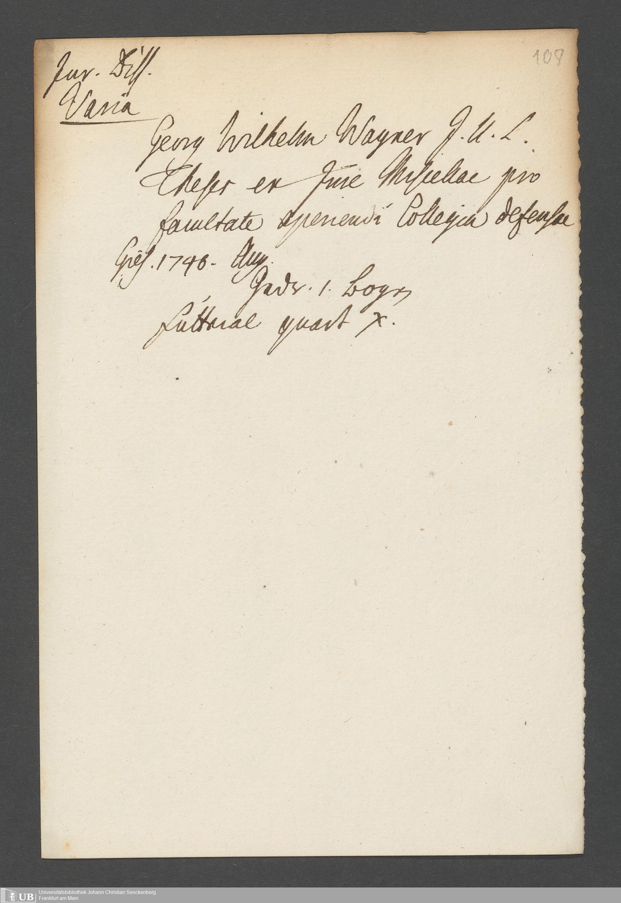 Nachlass Johann Wilhelm Boegner