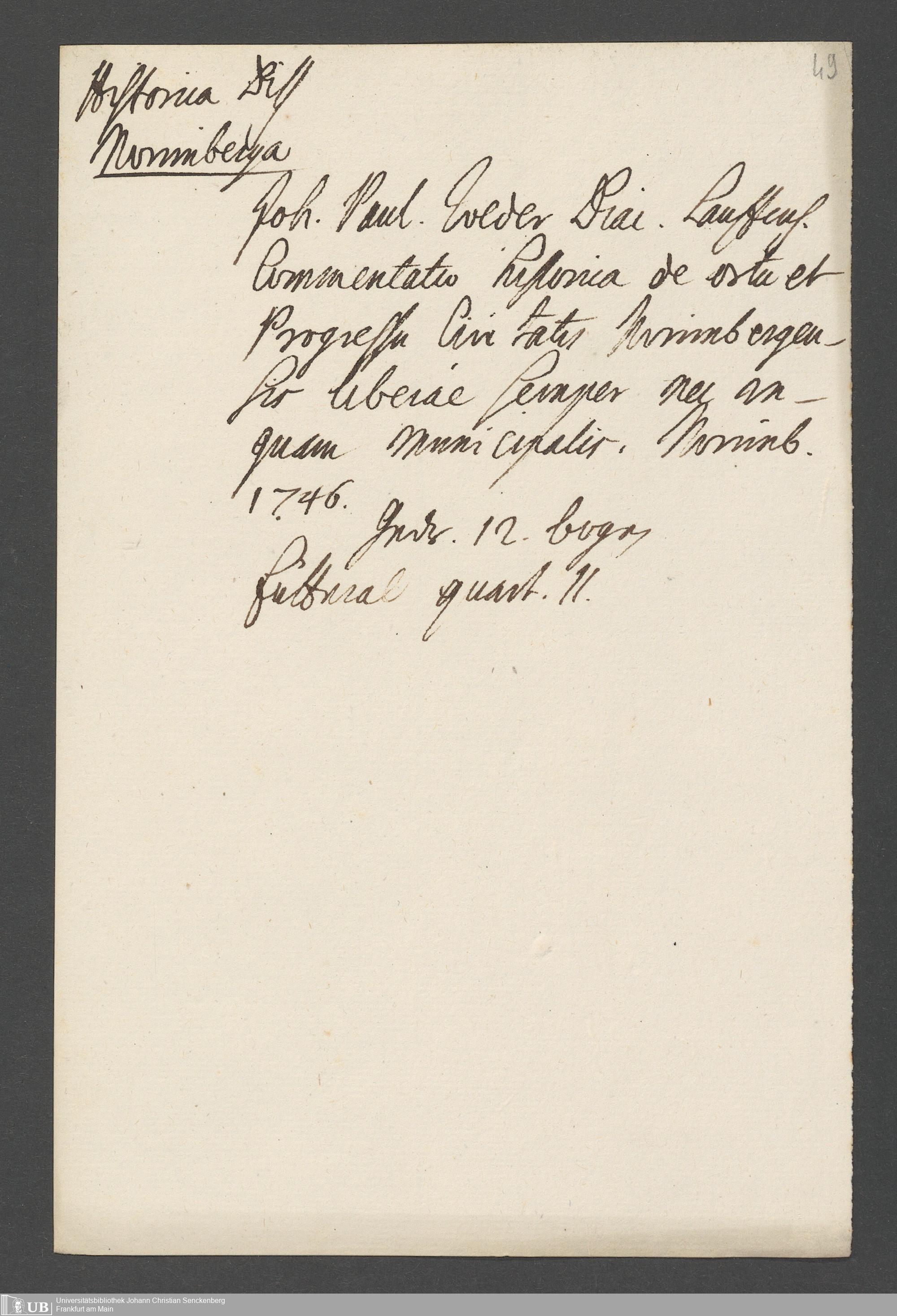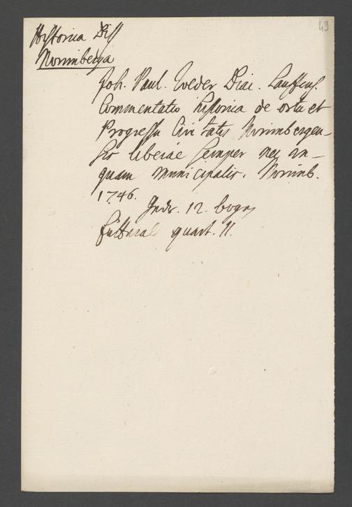 Na 31 Nachlass Johann Christian Senckenberg, 80 - Verzeichnis von Büchern und Mansukripten im Besitze des Erasmus Senckenberg