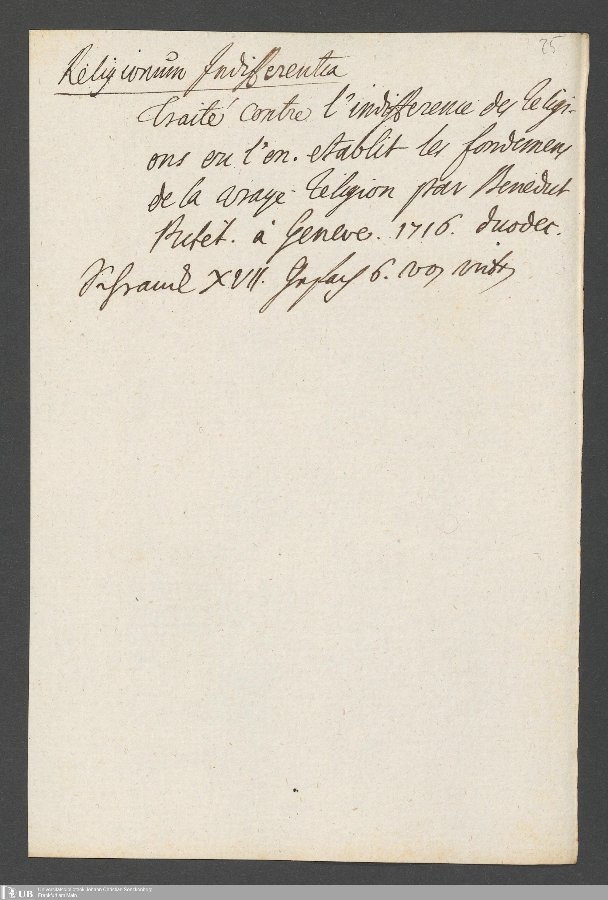 Na 31 Nachlass Johann Christian Senckenberg, 81 - Verzeichnis von Büchern und Mansukripten im Besitze des Erasmus Senckenberg