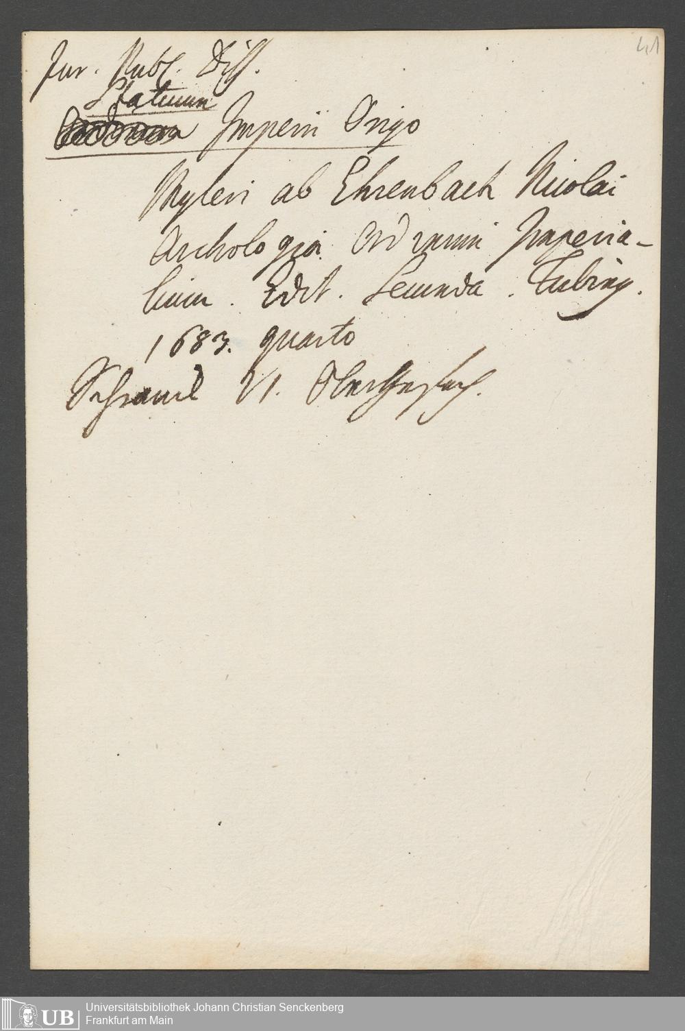 Na 31 Nachlass Johann Christian Senckenberg, 81 - Verzeichnis von Büchern und Mansukripten im Besitze des Erasmus Senckenberg
