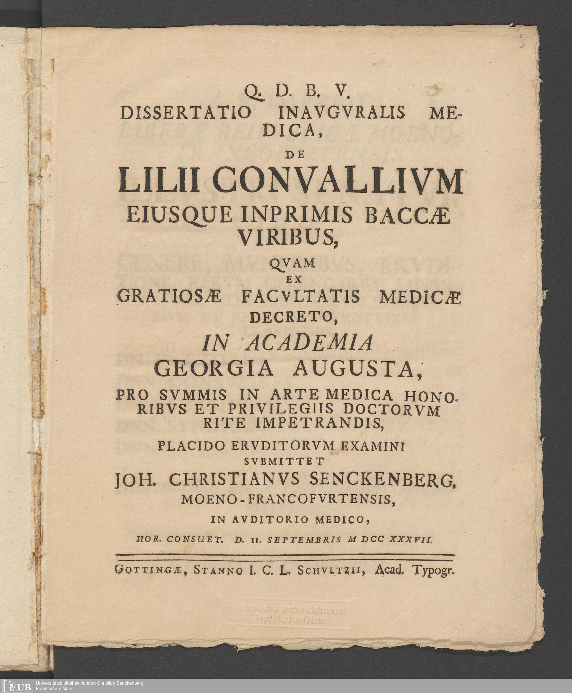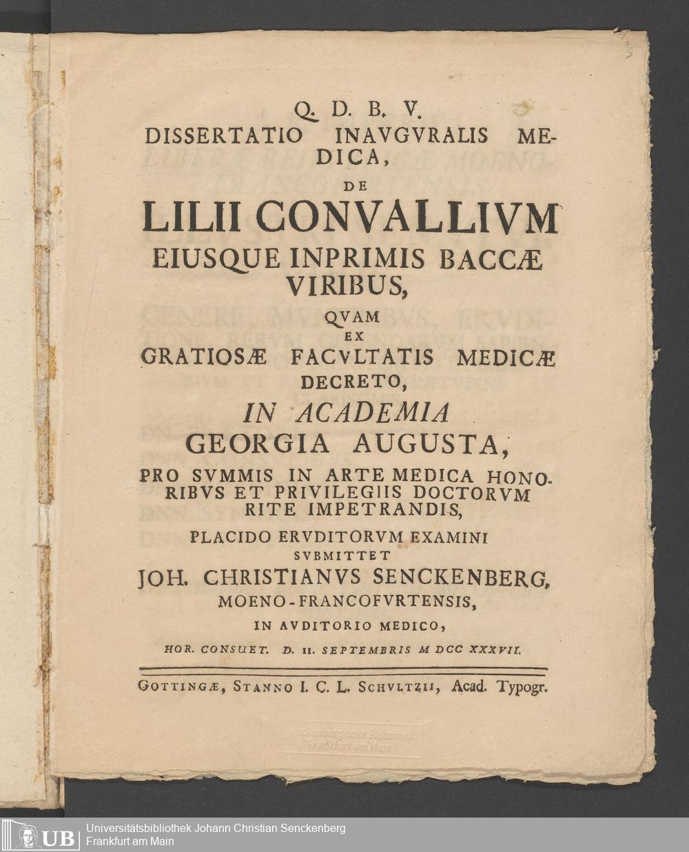 Na 31 Nachlass Johann Christian Senckenberg, 83 - Dissertation Johann Christian Senckenbergs