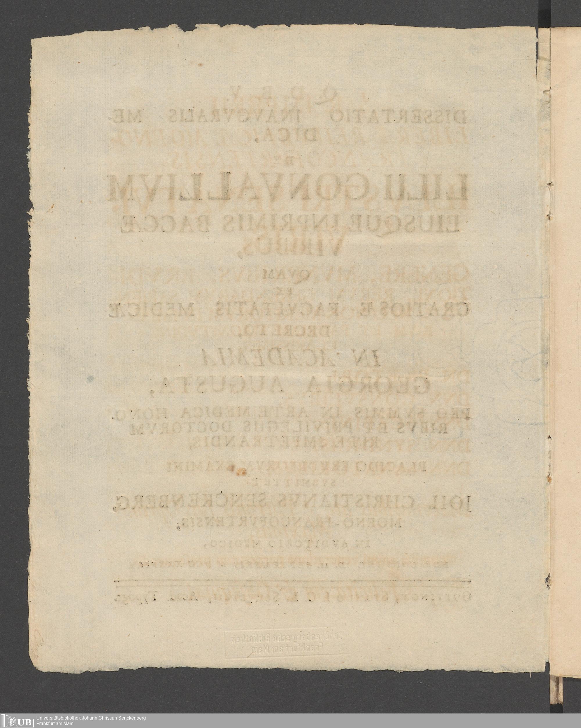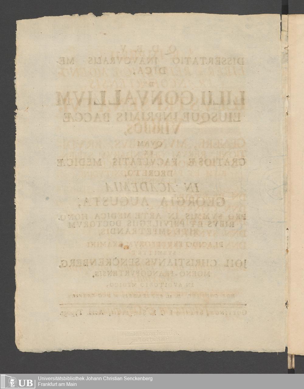 Na 31 Nachlass Johann Christian Senckenberg, 83 - Dissertation Johann Christian Senckenbergs