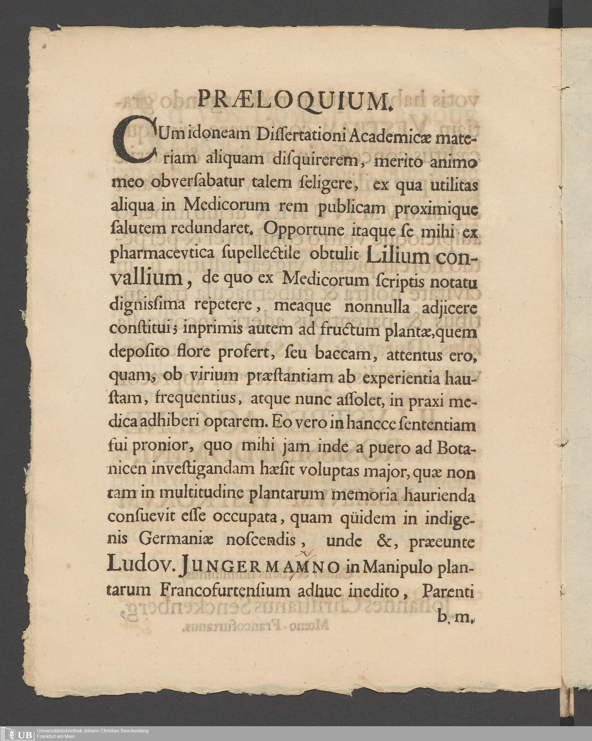 Na 31 Nachlass Johann Christian Senckenberg, 83 - Dissertation Johann Christian Senckenbergs (p. I.1.c.25)