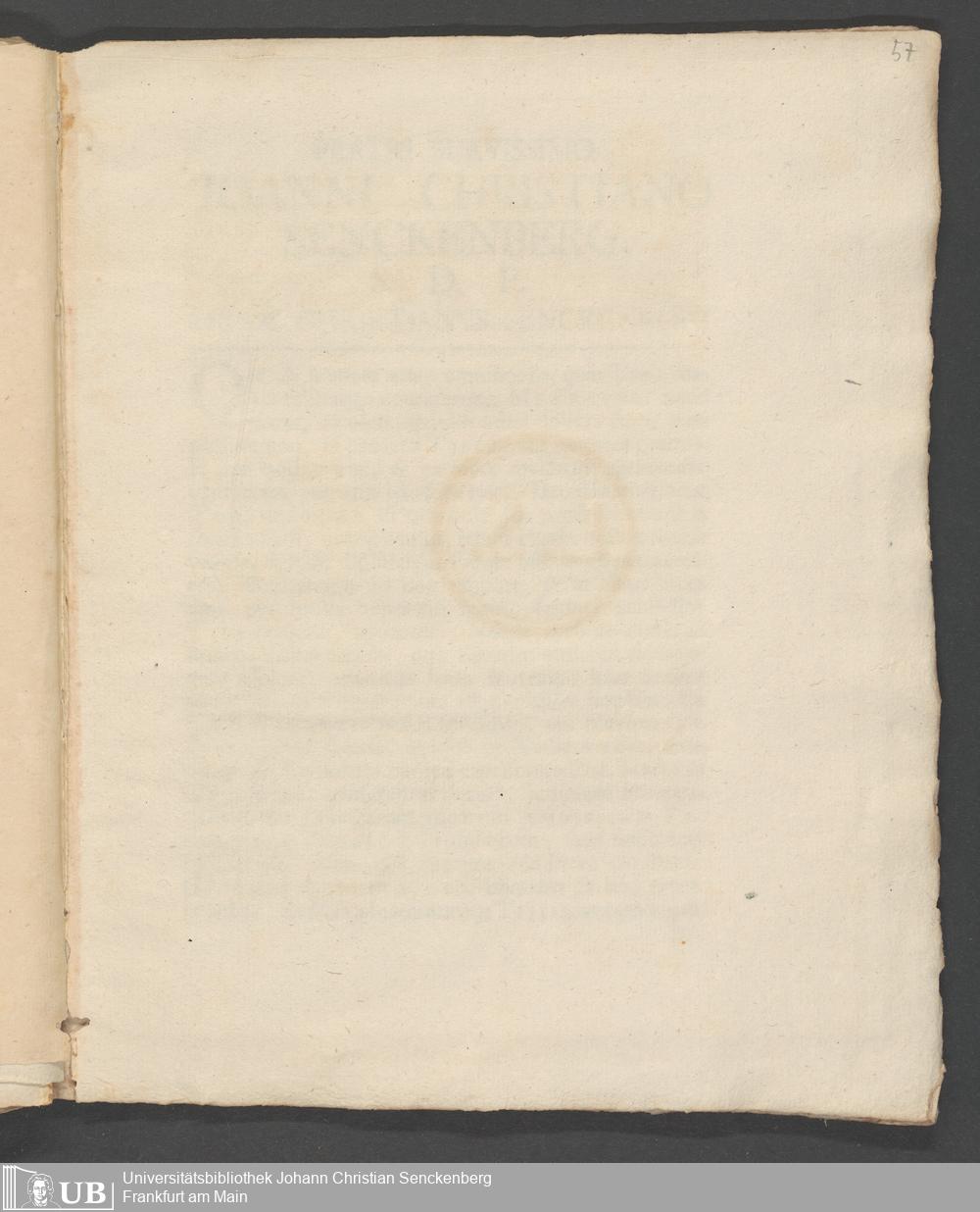 Na 31 Nachlass Johann Christian Senckenberg, 83 - Dissertation Johann Christian Senckenbergs
