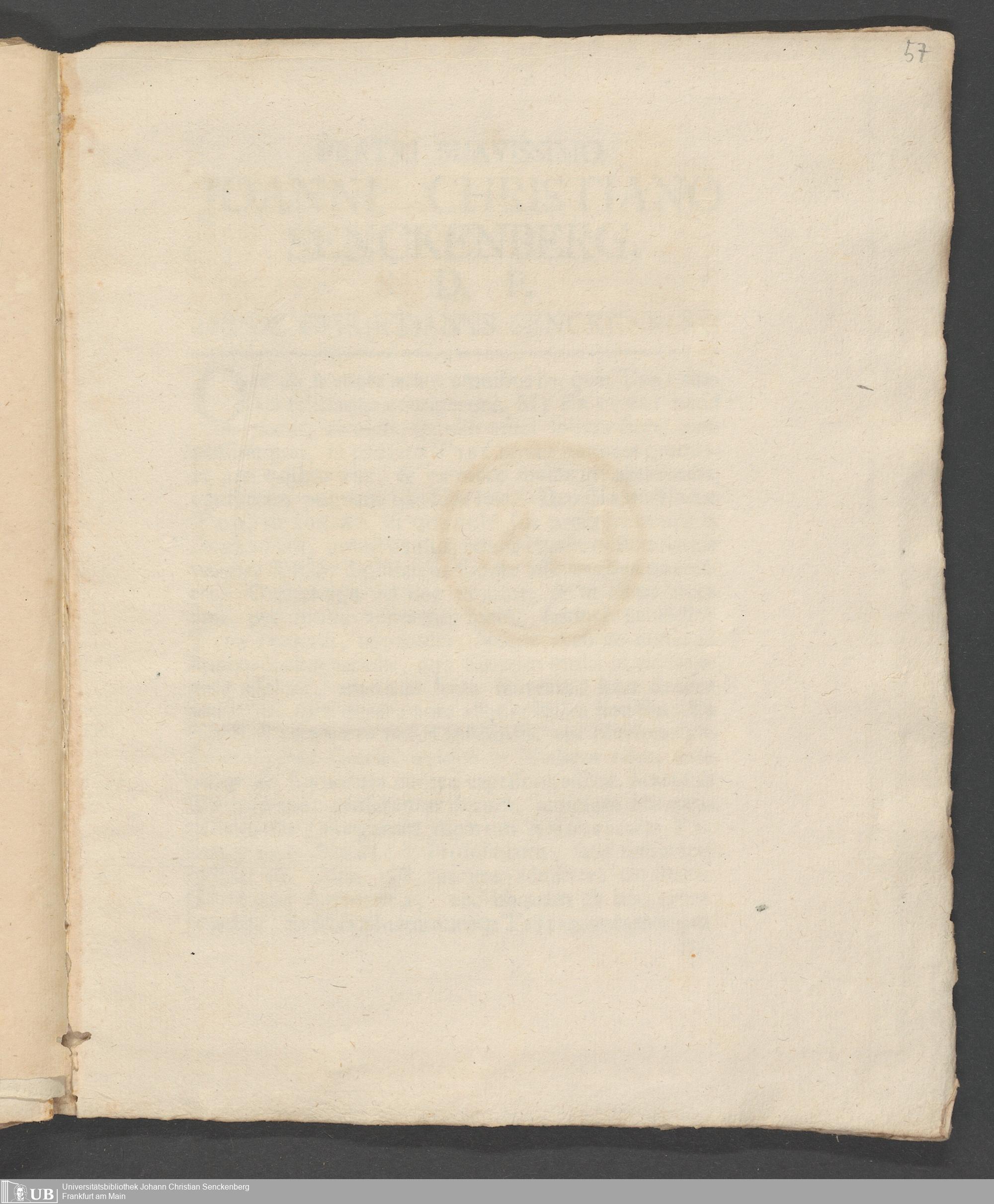Na 31 Nachlass Johann Christian Senckenberg, 83 - Dissertation Johann Christian Senckenbergs (p. I.1.c.25)
