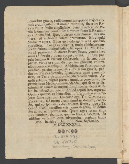 Na 31 Nachlass Johann Christian Senckenberg, 83 - Dissertation Johann Christian Senckenbergs (p. I.1.c.25)