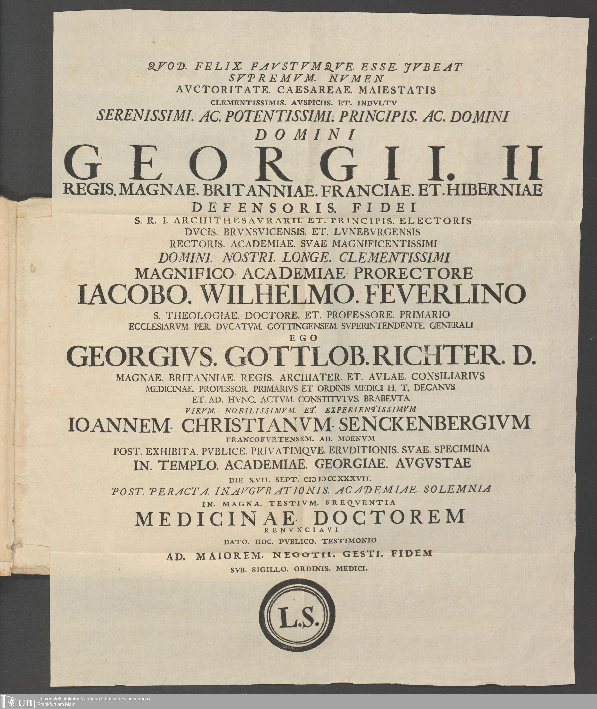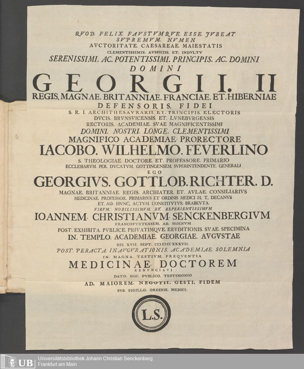 Na 31 Nachlass Johann Christian Senckenberg, 83 - Dissertation Johann Christian Senckenbergs