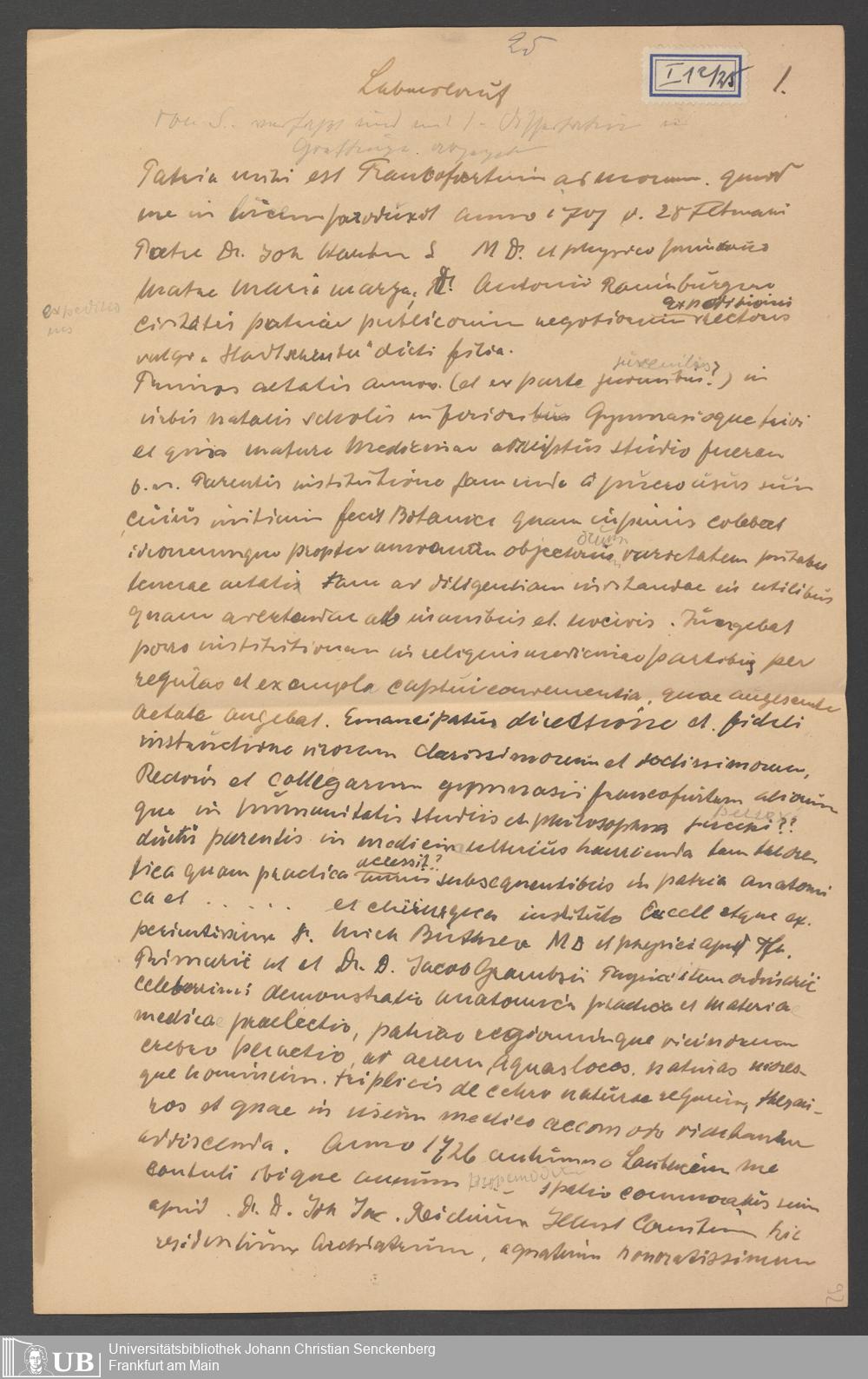 Na 31 Nachlass Johann Christian Senckenberg, 83 - Dissertation Johann Christian Senckenbergs