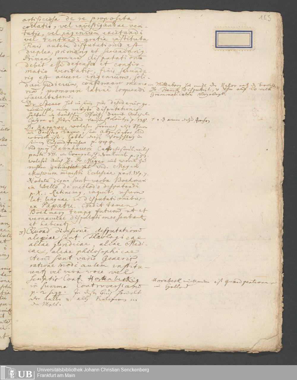Na 31 Nachlass Johann Christian Senckenberg, 83 - Dissertation Johann Christian Senckenbergs (p. I.1.c.25)