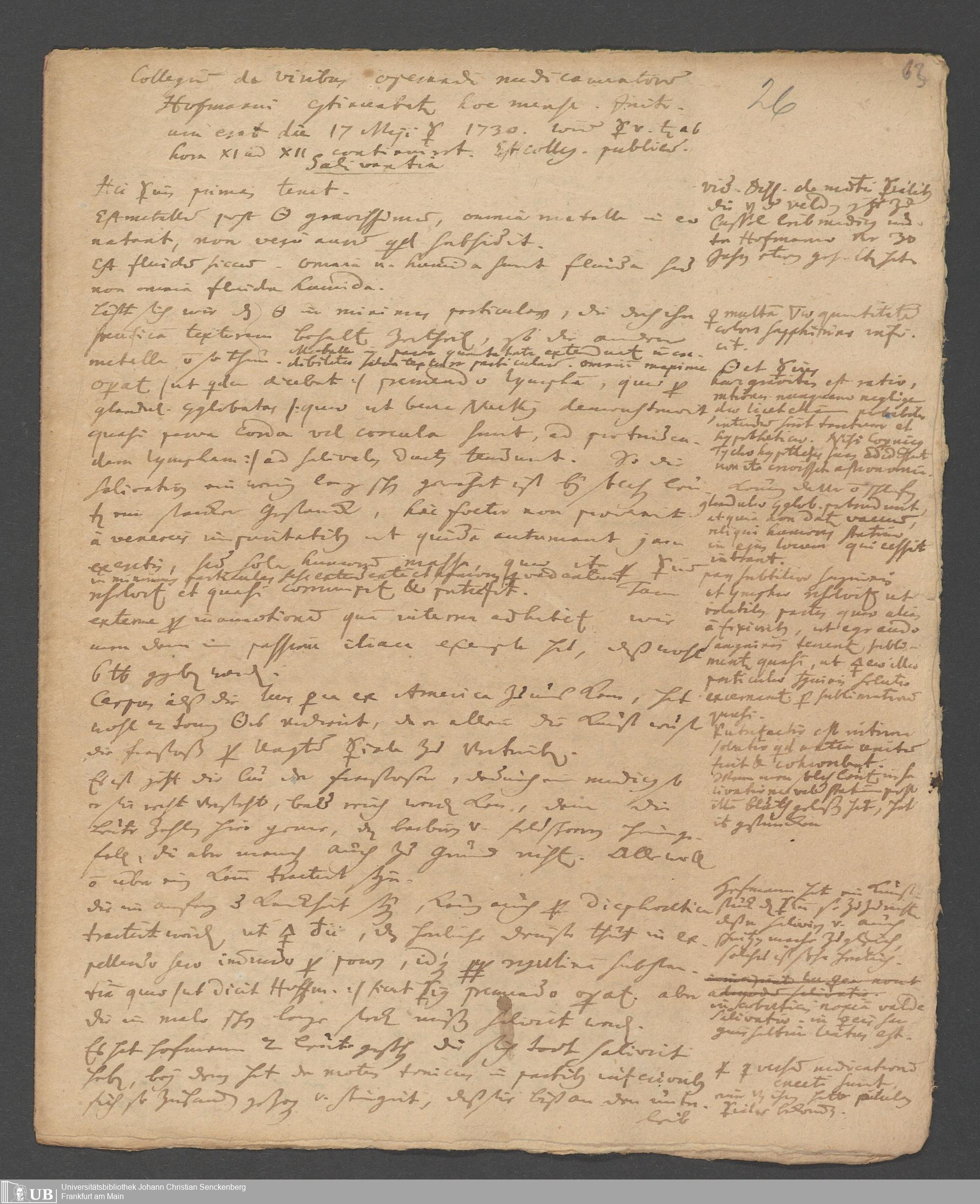 Na 31 Nachlass Johann Christian Senckenberg, 84 - Kolleghefte nach Vorlesungen von Dr. Hofmann in Halle (p. I.1.c.26)