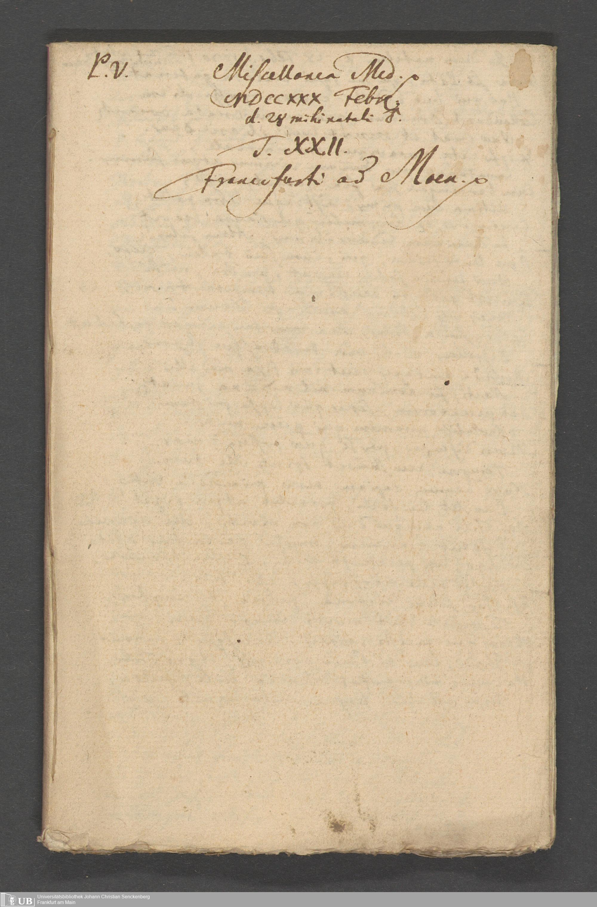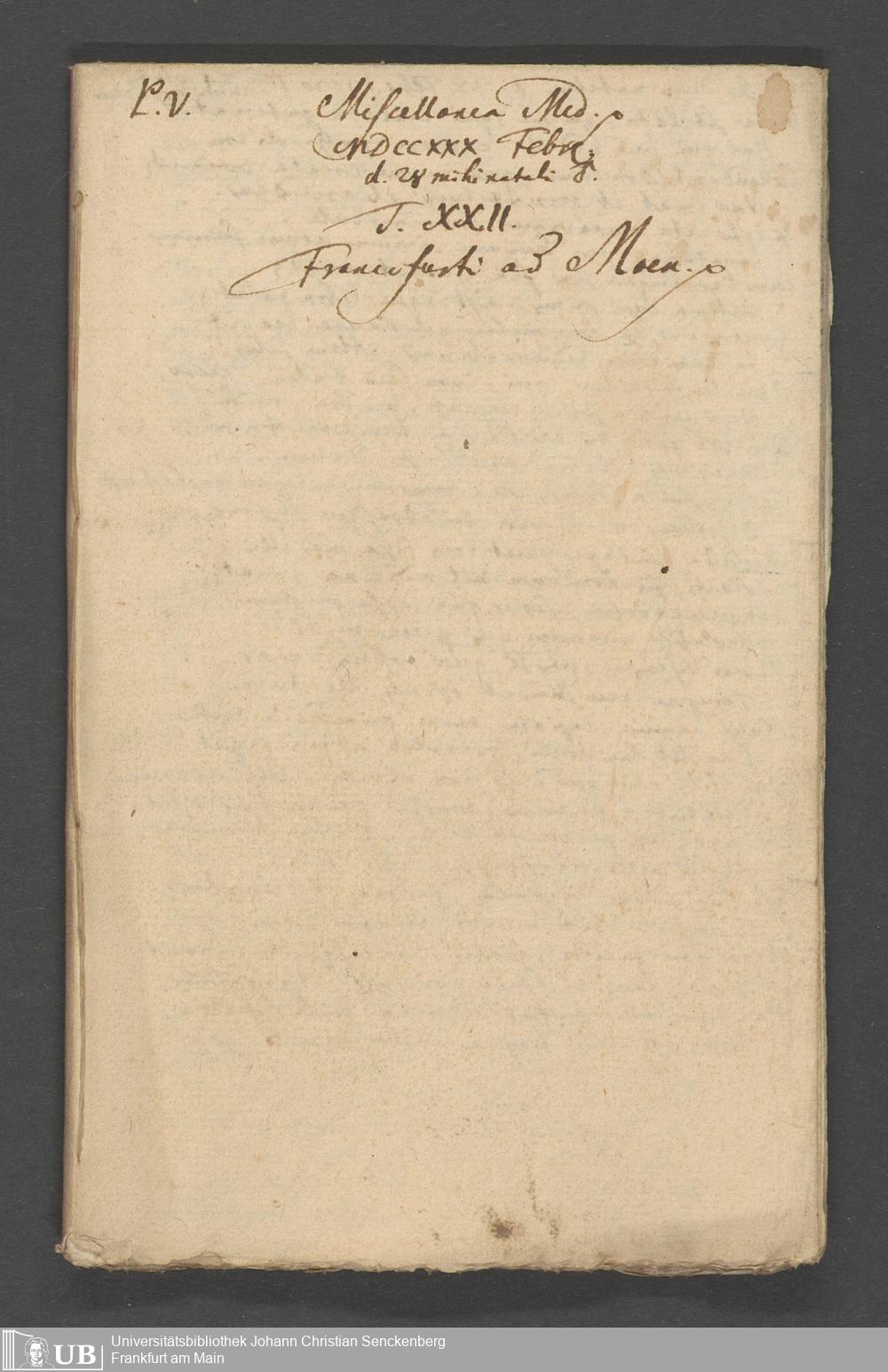 Na 31 Nachlass Johann Christian Senckenberg, 124 - "Miscelanea Medica" (Heft 15-18) (p. I.2.a.60)