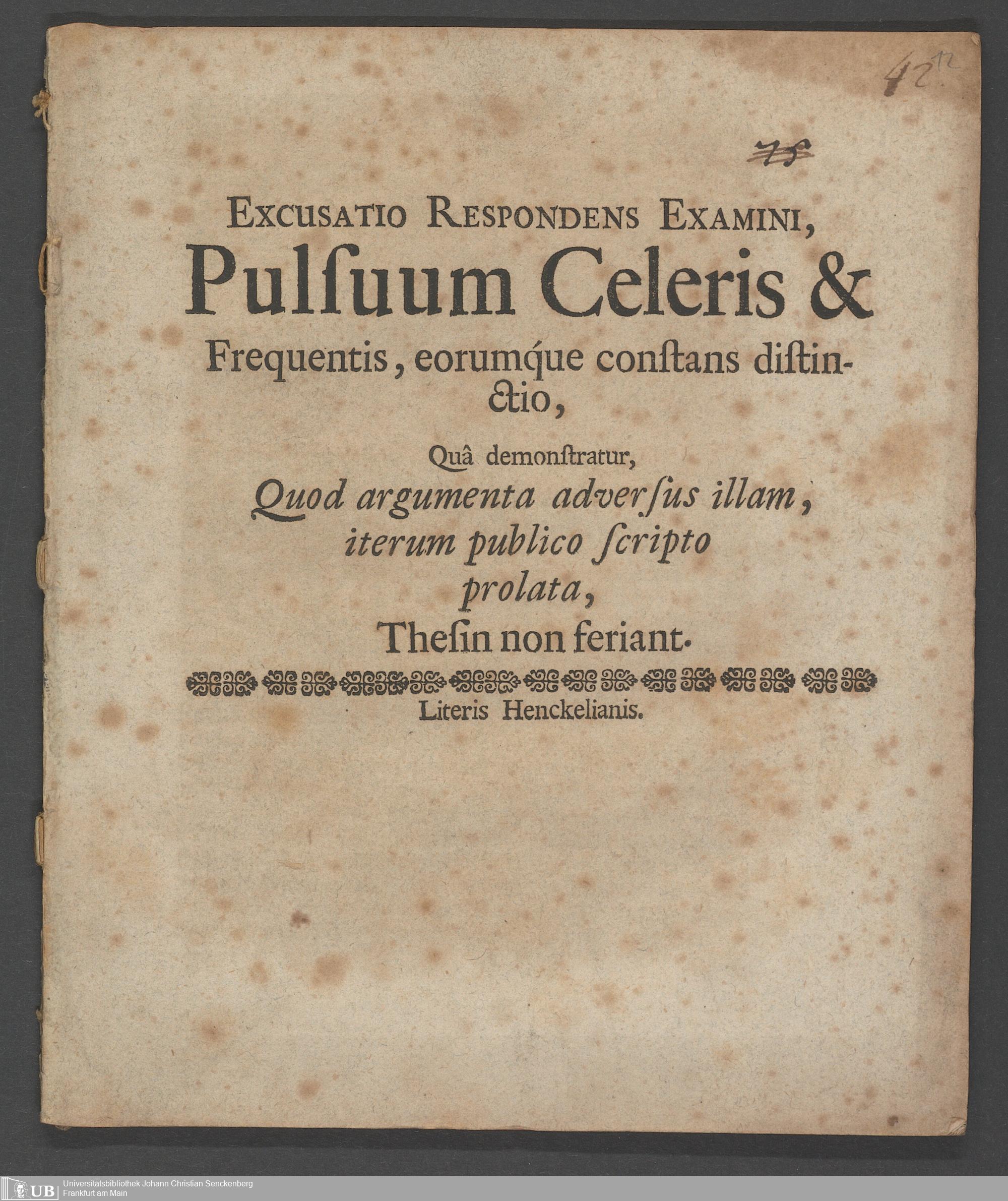 Na 31 Nachlass Johann Christian Senckenberg, 129 - Dissertationen und Druckschriften medizinischen Inhalts