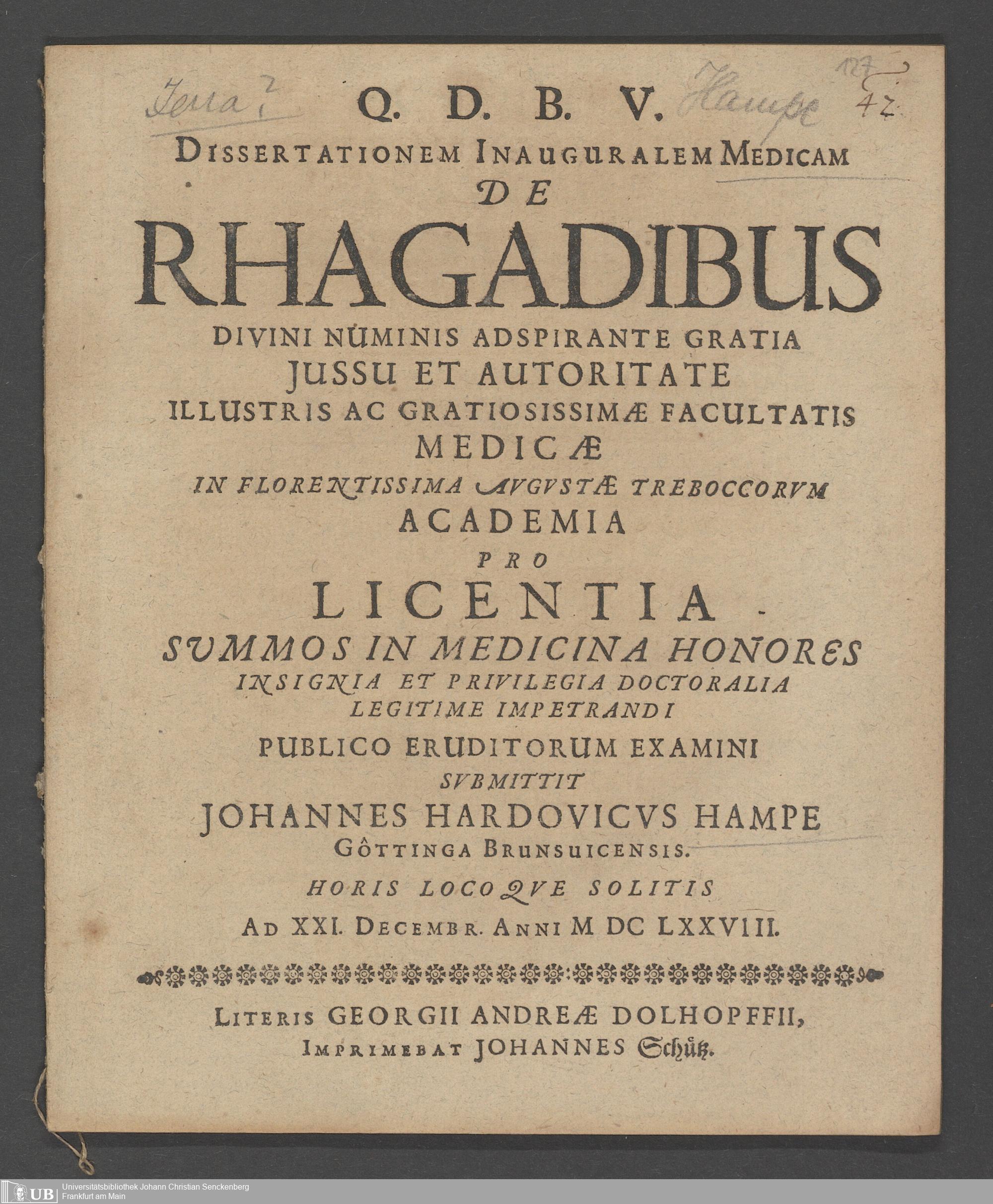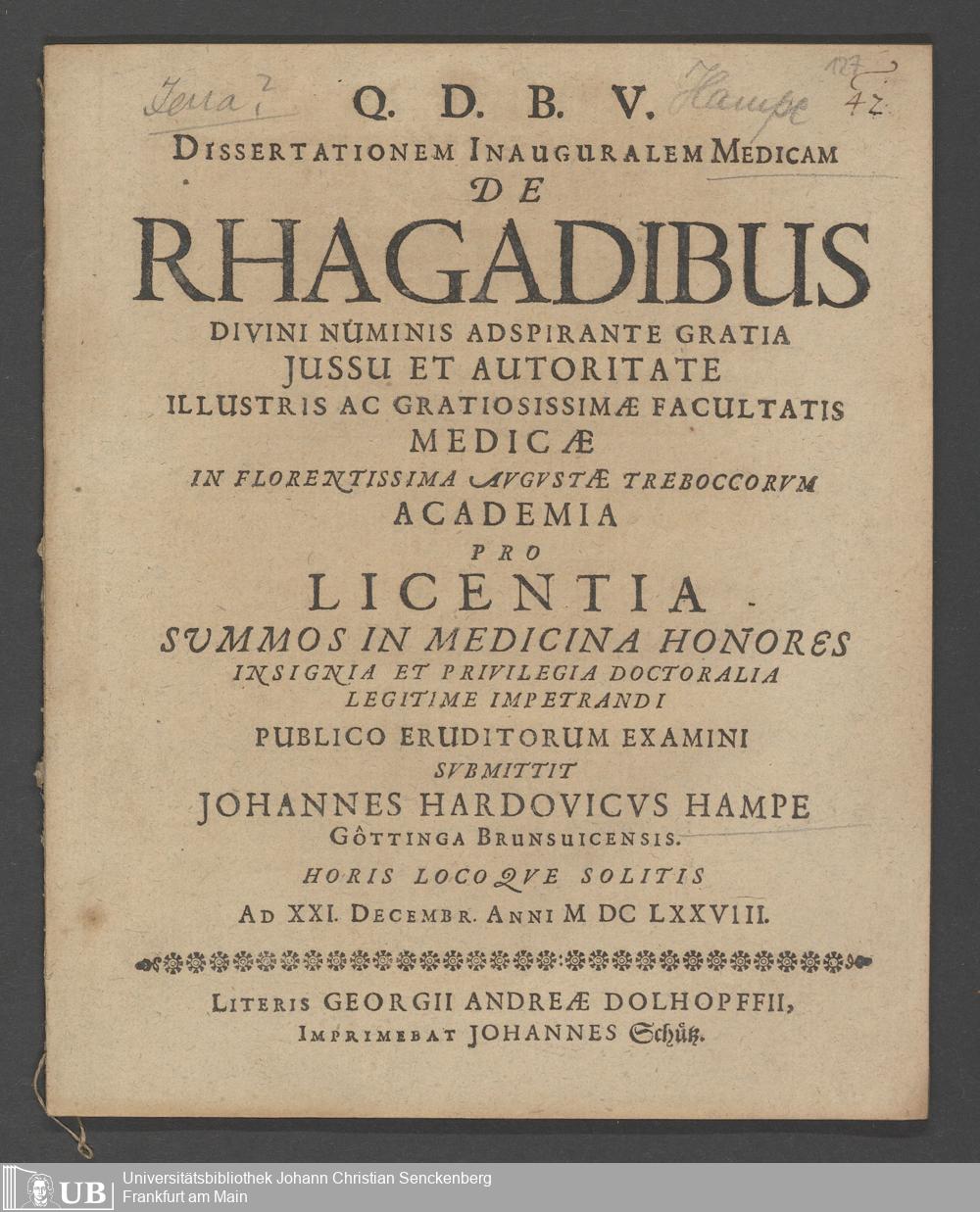 Na 31 Nachlass Johann Christian Senckenberg, 129 - Dissertationen und Druckschriften medizinischen Inhalts
