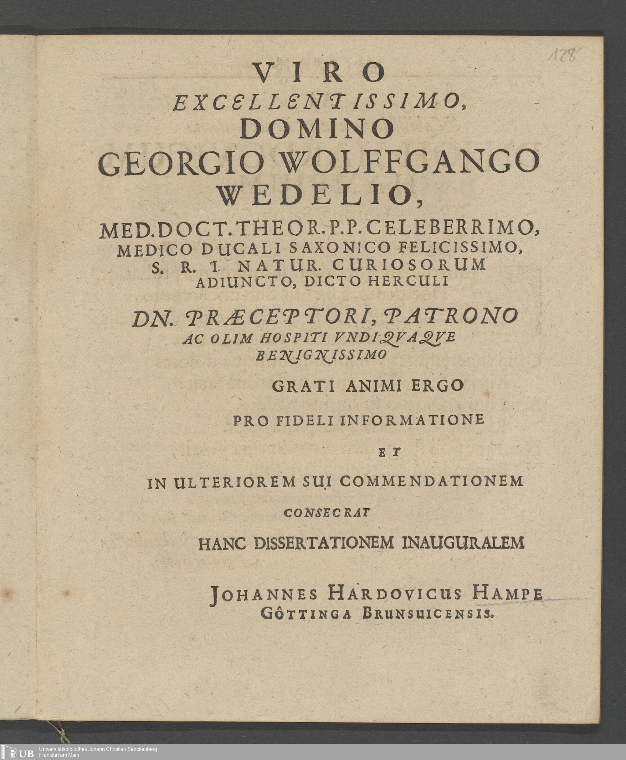 Na 31 Nachlass Johann Christian Senckenberg, 129 - Dissertationen und Druckschriften medizinischen Inhalts