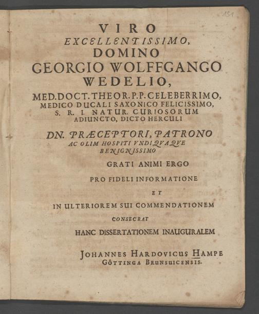 Na 31 Nachlass Johann Christian Senckenberg, 129 - Dissertationen und Druckschriften medizinischen Inhalts